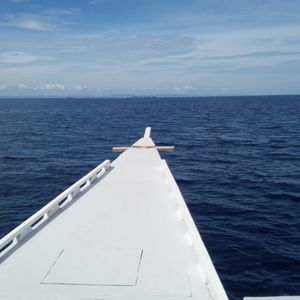 Jパークホテルの隣の桟橋からアウトリガーボートでヒルトゥガン島に向かいます。