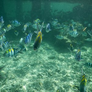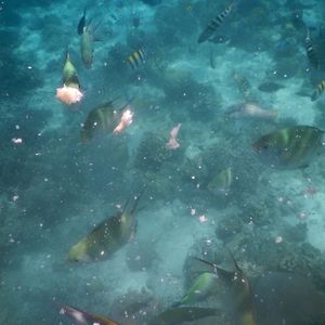 ナルスアンのボート乗り場近くのシュノーケルでは、手で触れる近さに恐ろしい量の魚群がおり、写真を撮りまくることができました。