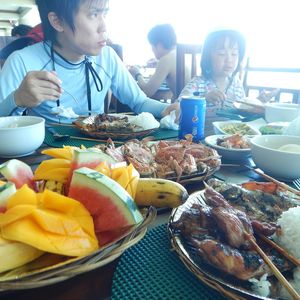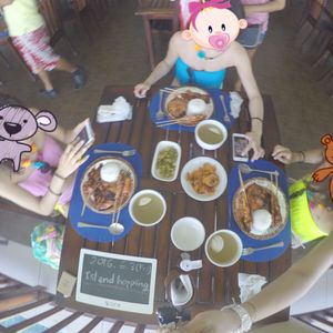 再び船に乗り10分くらいで昼食を食べる島に着きます。BBQとありますが焼いてあるものが出てきます。お肉と魚とカニとエビ。スープとごはんが付いています。デザートはマンゴーとバナナ。マンゴーは今回の旅行で一番おいしいマンゴーでした。