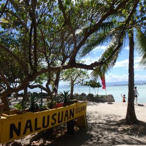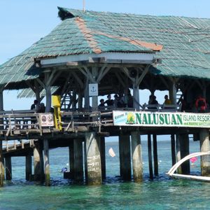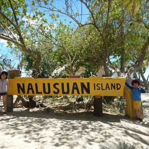 日本で予約して行きました。ホテルまで迎えに来てもらったのですが、道が渋滞していたらしく、20分程遅れて少し不安なスタートでした。ツアー会社に着くとすぐに出発しました。広い船で30分程でシュノーケリングポイントへ。海が透明でとてもキレイです。魚もたくさん見れました。45分間自由にシュノーケリングできました。大満足です。次はナルスアン島へ。桟橋に着き歩いて島まで行きます。両サイドがきれいな海でどこも絶景です。たくさん写真を撮りました。ランチはバーベキュー。1ドリンク付きなので、好きな物をオーダーします。マンゴージュース、パイナップルジュース、7UPくらいだったでしょうか。ビールは有料でした。ドリンクを飲んでいると次から次へと料理が運ばれてきます。スープ、海藻、大学芋の様な物、エビ、イカ、鶏肉、豚肉のバーベキューとご飯です。バーベキューの色は赤っぽく、どんな味だろうと思いましたが、食べてみるとやみつきになるくらい美味しかったです。完食しました‼︎食後はスイカやバナナやマンゴーのフルーツもたくさん頂きました。フルーツも甘くて美味しかったです。食後は島のビーチ⁇をお散歩しました。ビーチと言っても、広い砂浜がある訳ではないです。階段があるので海にも入ってみました。遠浅で写真を撮るにはいいポイントでした。私達は念のため水中メガネを持って行っていたので、浅瀬を少し泳ぎました。太陽の光で海底がキラキラと光り、きれいでした。海への出入り口付近は珊瑚がたくさんあり、ビーチサンダルを履いていないと足が痛いです。ガイドさんに写真も撮ってもらいました。まだまだ時間があったので、桟橋の広場に荷物を預け、桟橋の横でシュノーケリングをしました。ここもとてもキレイです。桟橋からガイドさんが魚の餌のパンを投げ入れてくれ、それに魚がたくさん寄ってきて、ありえない程の魚に囲まれました笑。こんな経験は2度と出来ないと思います。このツアーに参加してよかったと思いました。全体的に大満足です。セブ島に行った時はまた利用したいと思います‼︎