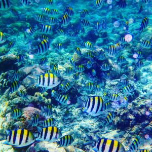 魚の生息率No.1!世界的に有名なシュノーケル&ダイビングスポット、ヒルトゥガン島。 海洋保護区に指定され、エメラルドグリーンの美しい海にはサンゴとカラフルな熱帯魚がいっぱい!思い描く楽園がここにあります。内海のため大きな波も少なく、お子様も安心してシュノーケリングをお楽しみいただけます。 ヒルトゥガン島に上陸するツアーなら、珊瑚でできた人気のホワイトビーチへ!島内には人口1,000人足らずの小さな漁民の村もあり、素朴な島内の散策も楽しみです。 (マクタン島から船で約20~30分)