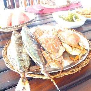 バーベキューは「おいしい!もっと食べたい!」とはならなかったのですが、チキンやお魚、カニ、フルーツとスープが出ます。
