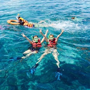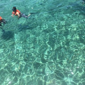 シュノーケリングはボートダイブです。深さもあり、波も多少あるので、全く泳げない方は遠慮されたほうがよいかもしれません。シュノーケリング時間は30~40分くらいでした。5歳の息子は、現地のスタッフさんが終始付き添って下さったので、安心して私たちも楽しむことができました。海は透明で、本当にたくさんの魚がいます。餌付けもできます。
