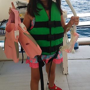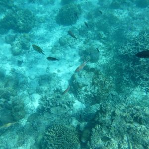 シュノーケリングは初めての体験でしたが、道具一式をレンタルでき、ライフジャケット着用だったため、初心者でも全く問題ないでしょう。想像より魚が多く、人慣れ?しているためか間近で観察することができます。シュノーケリング時間は45分程度でしたが、疲れたら船上で休むこともできるので、ちょうどよかったと思います。