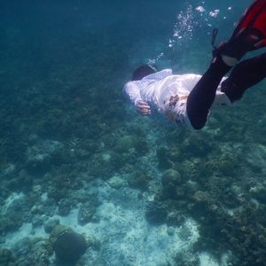 魚がいっぱいで海もキレイ。水中カメラを持っていったらガイドさんがシュノーケリング中の写真を撮ってくれたり、海の底にいる魚の群れやサンゴの写真を撮ってくれたりしました。なかなか素人ではシュノーケリングで海底まで潜るのは大変なので貴重な写真になりました。