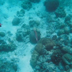 島でも桟橋付近からシュノーケリングが出来ましたが、私たちは島にある小さなビーチ(ビーチとは言い難いレベルではありましたが)へ行き、
