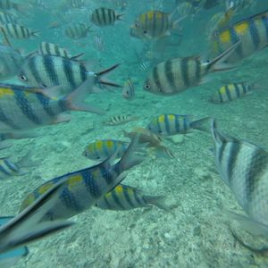 ヒルトゥガン島では45分くらいのシュノーケルを楽しめます。そのあとナルスワン島のレストランでバーベキューとフルーツなどを食べて、自由時間になります。ナルスワン島は全体で2時間程時間をもらえるのでまたシュノーケルをしました。少し潜るだけで魚がたくさんいて、とても楽しめました!