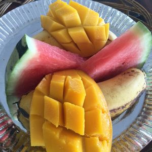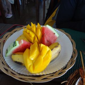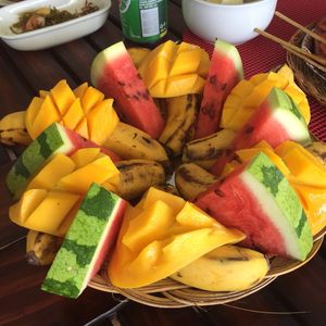 ランチは、バーベキューと南国のトロピカルフルーツで大変満足でした。