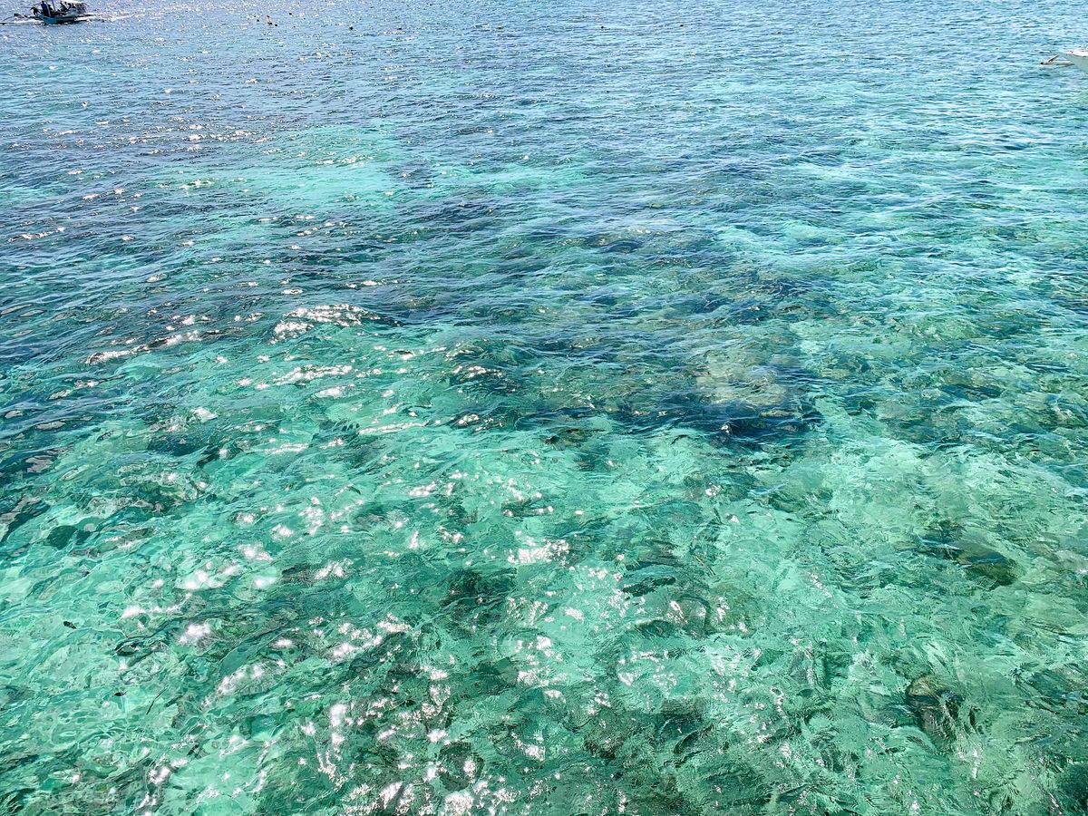 ヒルトゥガン島(上陸なし)は、魚の数がすごく多いです。他のツアー会社のボートも同じポイントに来るので、浮きで囲まれている中に大勢の人がおり、自由に泳ぎ回れない感じでした。