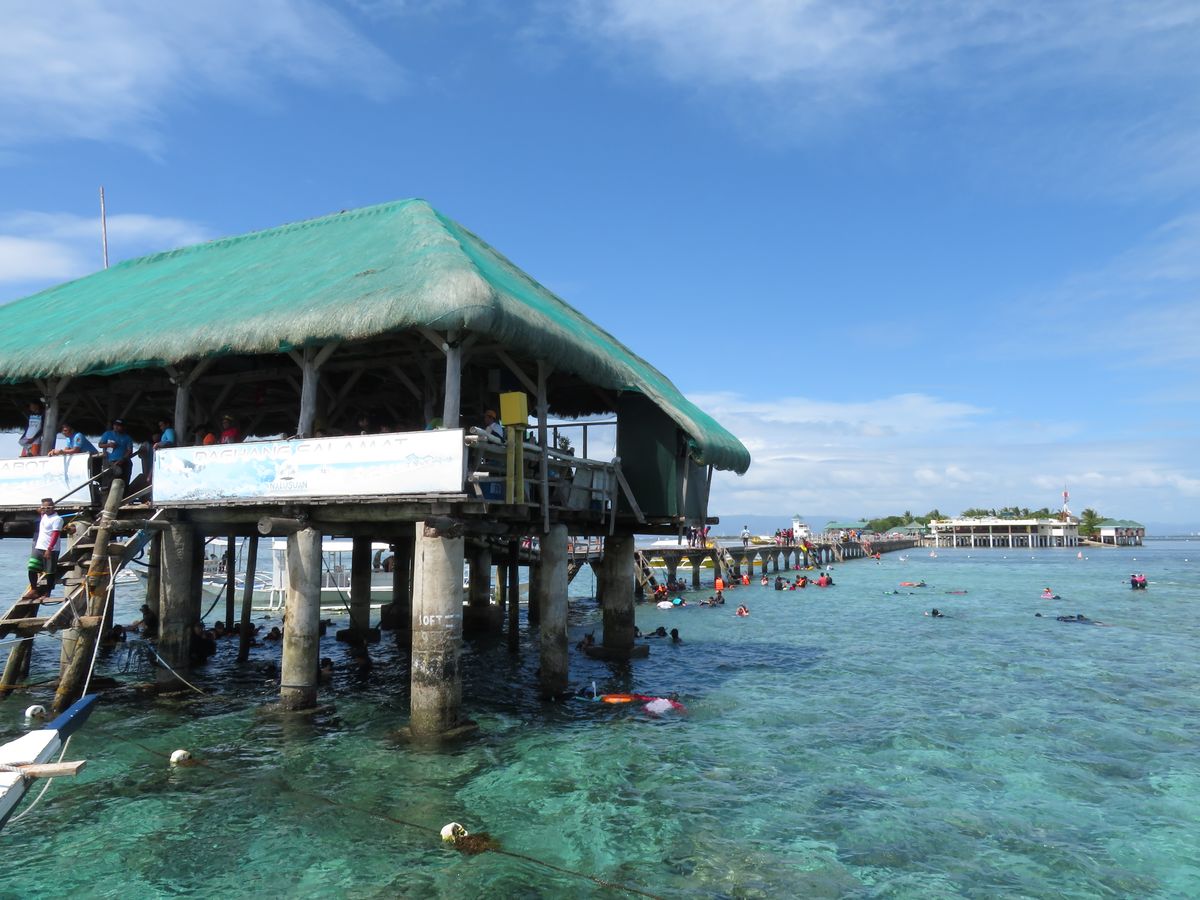 カランチョマリバゴビーチハウスで説明を受けて、ビーチサンダルを履いたままボートまで海の中をじゃぶじゃぶ歩きます。ボートから大きな船に乗り移り、船で数十分移動して、海の真ん中で止まりそこでシュノーケリングです!ライフジャケットとフィンとマスクを付けて、本格的に海を泳ぎながら沢山の綺麗な魚を目の前にでき感動でした。魚のエサも貰えるので、魚がパクパク食べるところも真近で見られます。シュノーケリング後は冷えますが、ナルスアン島に到着するとすぐにランチビュッフェが始まり、スープがあったので温まることが出来ました。ご飯も美味しいし景色も綺麗で、その後の自由時間ものんびり過ごせて最高でした。バーもあるのでジュースもお酒も飲めます!ロッカーはありませんが、日本人スタッフの方が荷物を見ててくださったので安心でした。小さな島ですがシュノーケリングとランチビッフェ、自由時間が充分にあるこのツアーに決めて本当によかったです。ありがとうございました!