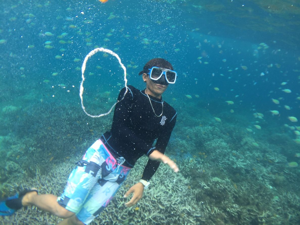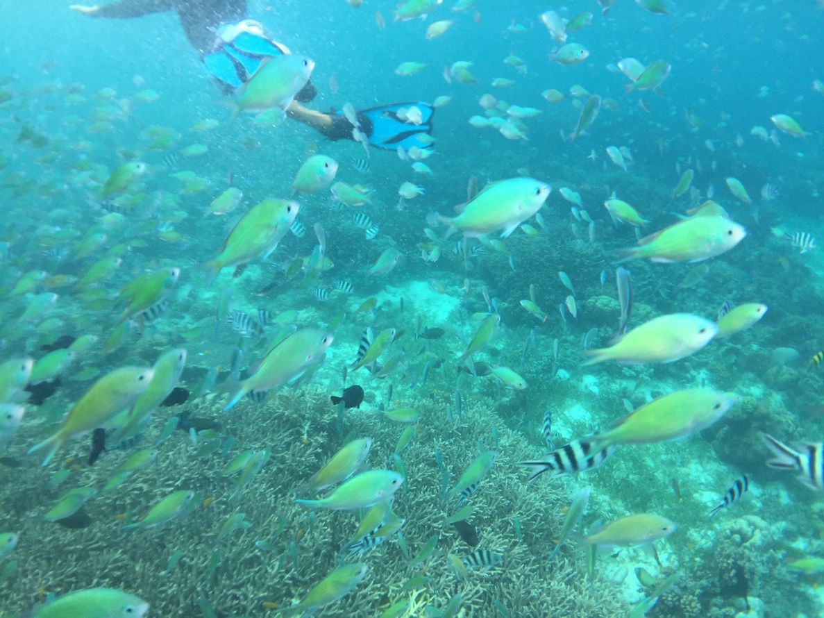 透き通った青い海でのシュノーケリングは、まるで魚になった気分を味わえるものでした。海の中は、沢山の魚と美しい珊瑚が広がっており、感動すること間違いなしです。