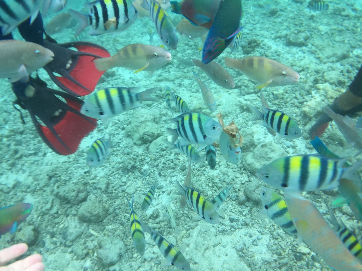 とにかく、凄いたくさんお魚見えます。特に昼食時の島は凄いです。