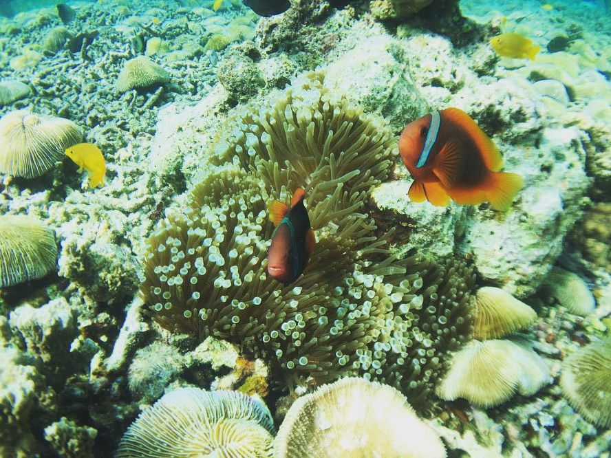 ・ヒルトゥガン島の近くでシュノーケリング。海が綺麗で魚もいっぱいいました!個人的にはカクレクマノミを見られて大満足です。