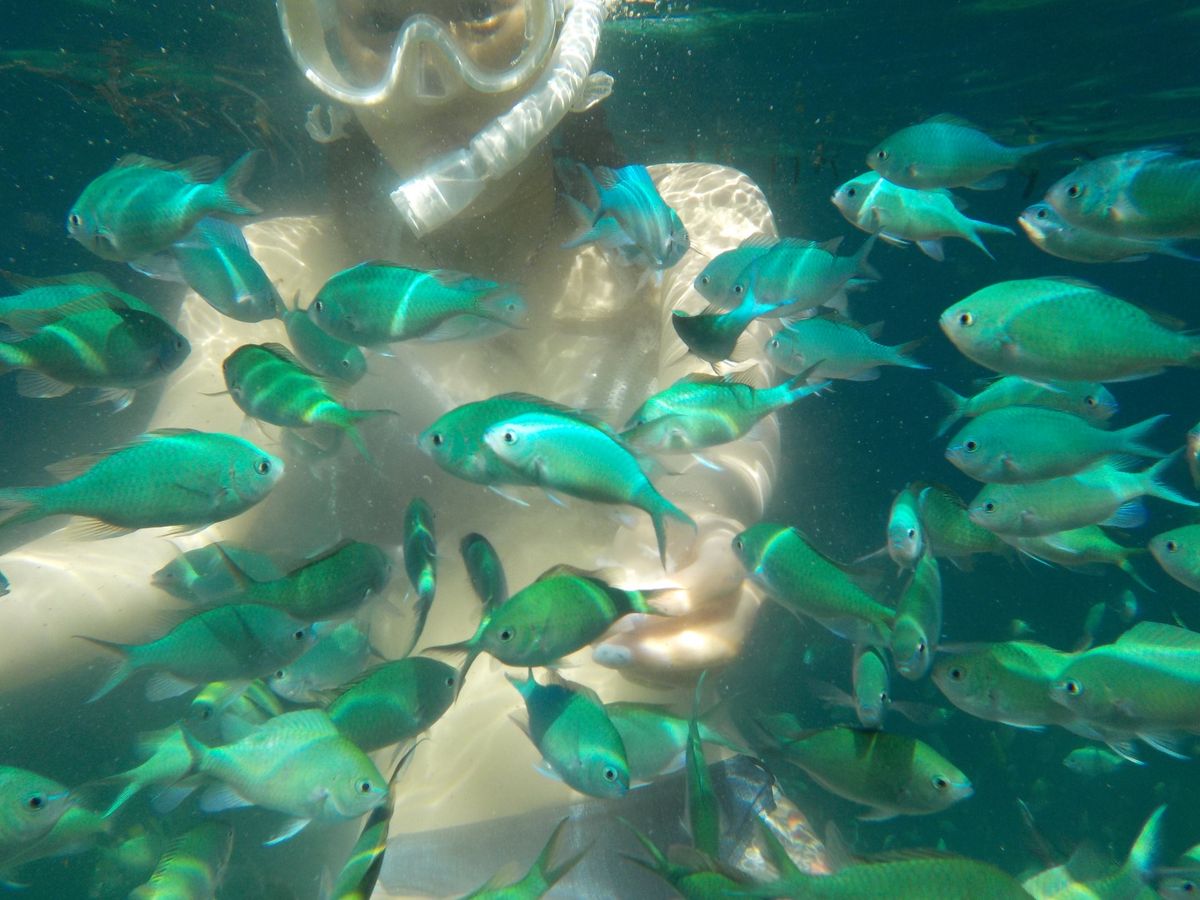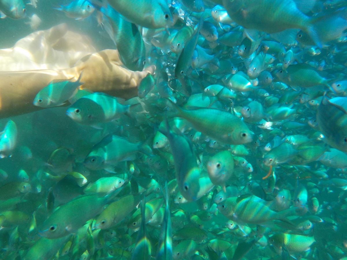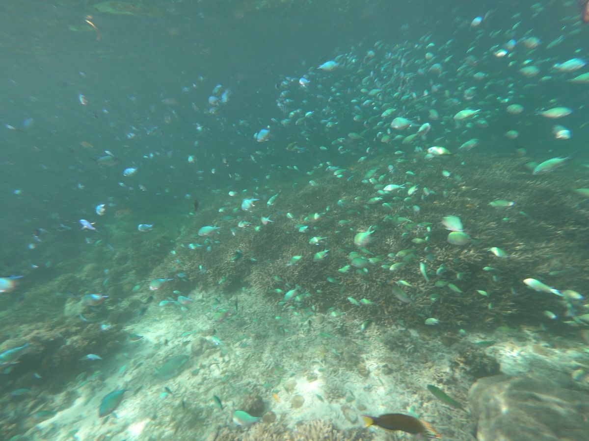 どちらの島でも魚にあげるエサをもらえて、特にナルスアン島ではたくさん魚がいて、エサをあげるとめちゃくちゃ集まってきてビックリしましたが楽しかったです。