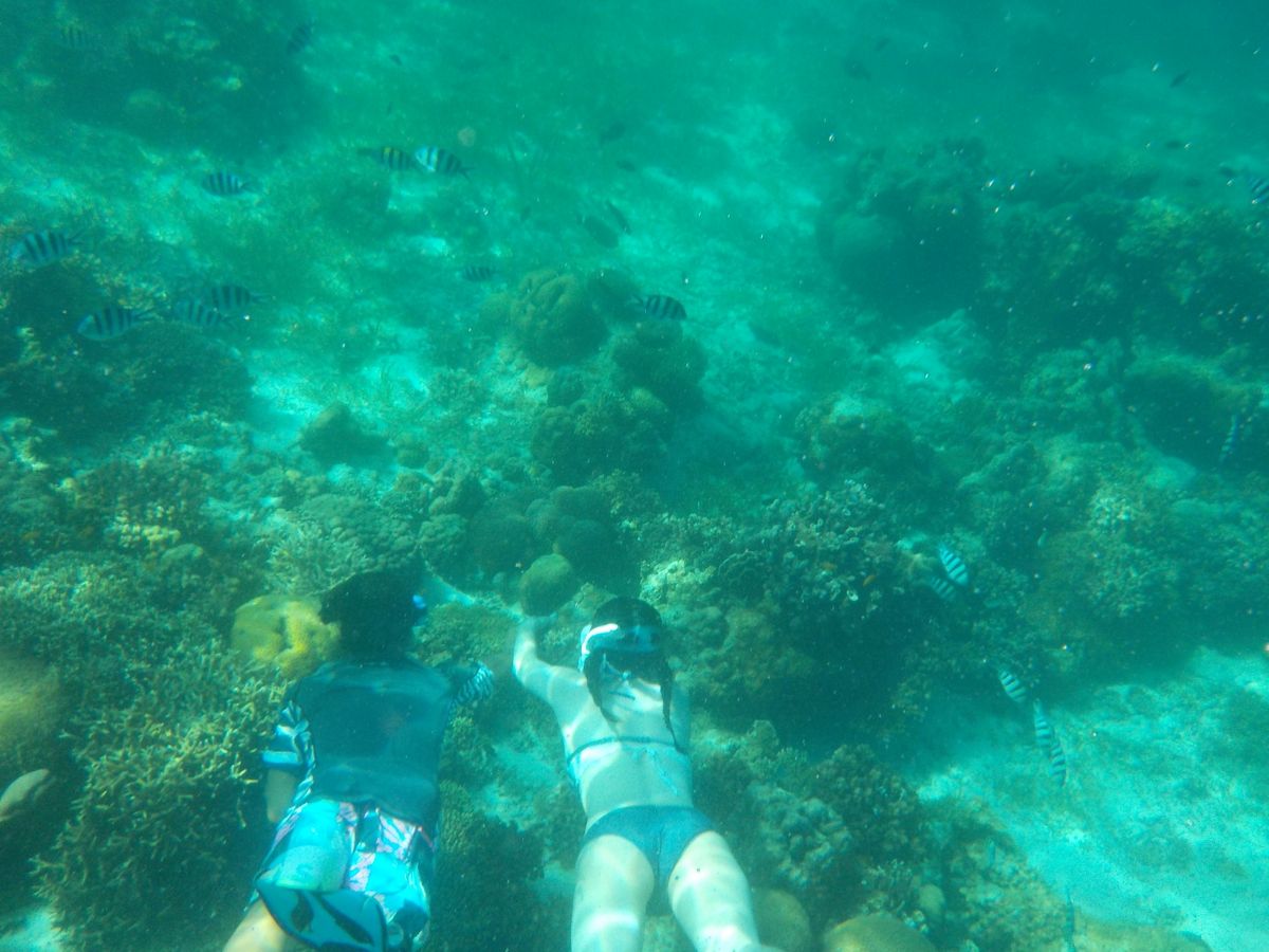 ヒルトゥガン島では深い場所でのシュノーケリング、ナルスアン島では浅い場所でのシュノーケリングと