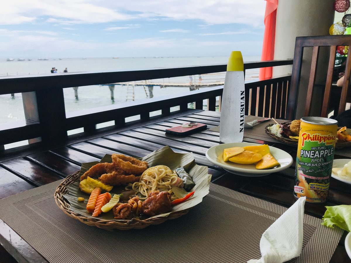 ナルスアン島ではビュッフェ、自由時間。島がそれほど大きくないので、思い思いの場所で記念撮影をしたらバーで休憩できます。追加料金がかかりますが150〜200ペソくらいで美味しいシェイクが飲めます!島で飼われている人懐っこいワンちゃんとの交流も楽しめました❤︎