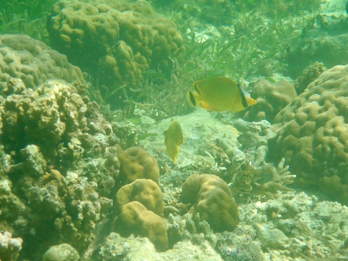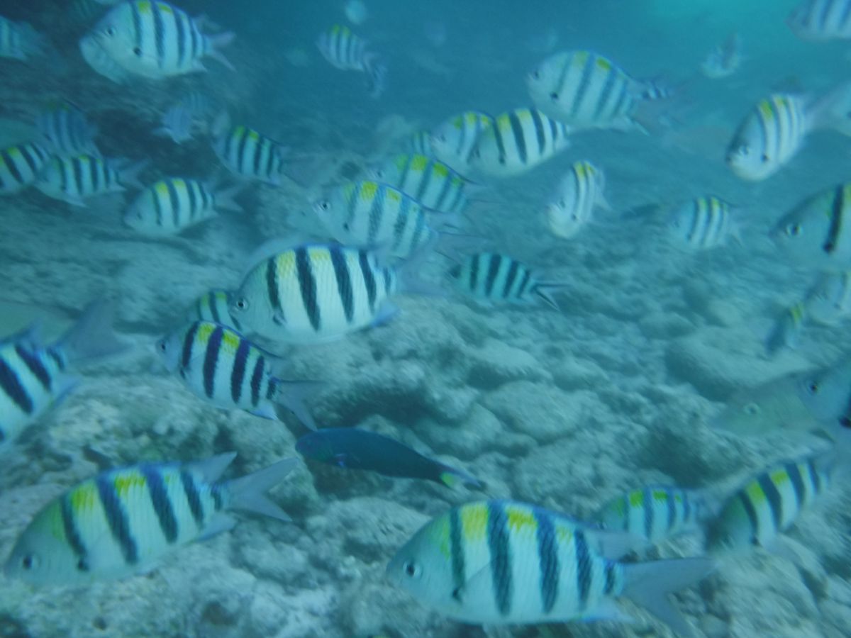 海は綺麗で、泳いで良いところにはたくさん魚がいます。