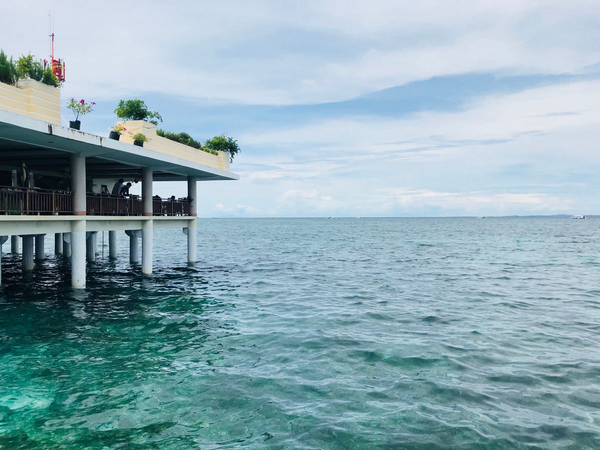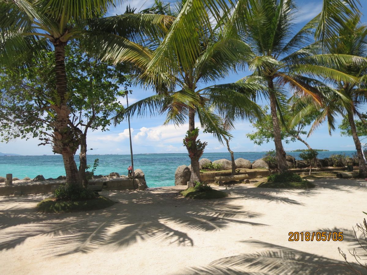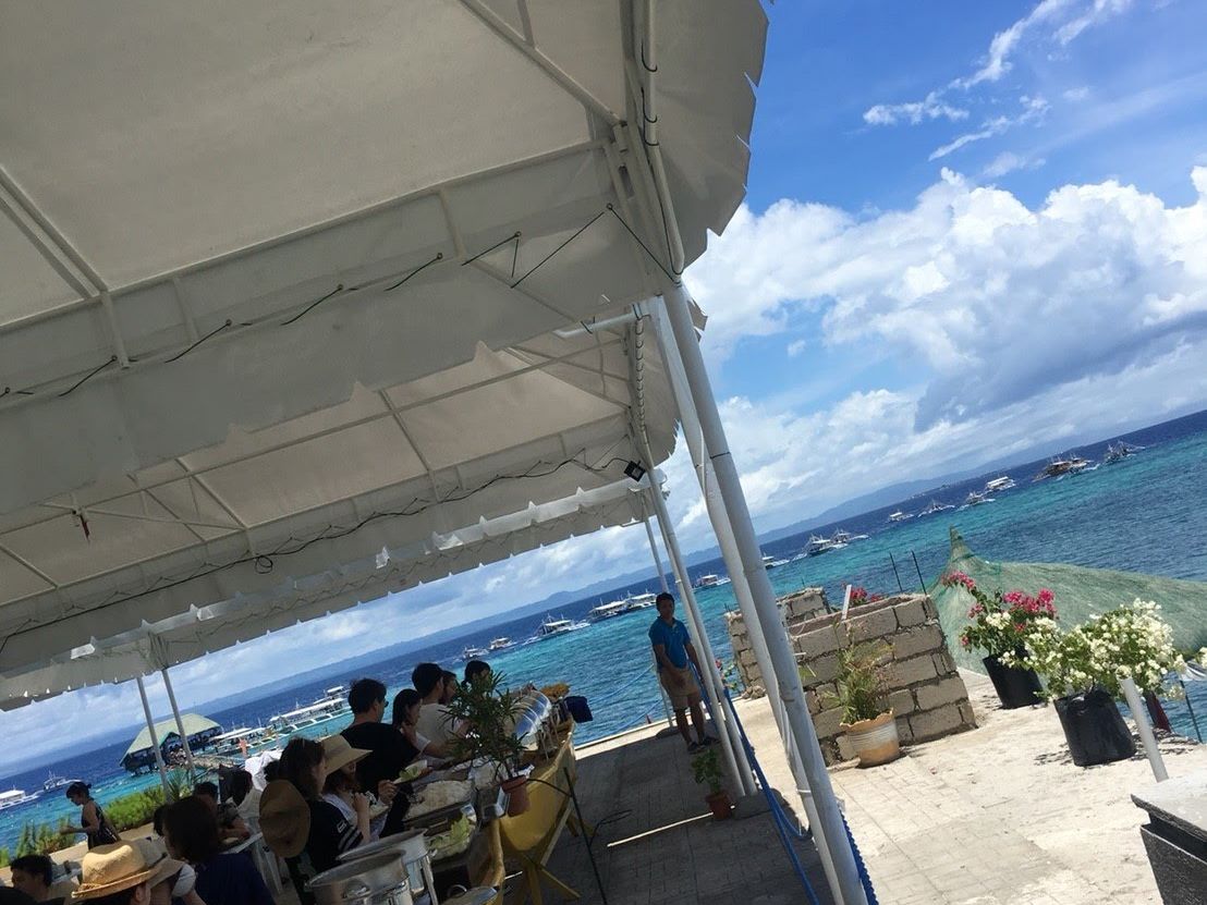 次に行ったナルスアン島では、まず海が見えるレストランでフィリピン料理のビュッフェでした。料理は種類も豊富で味も美味しく、またレストランからの眺望も良かったです。