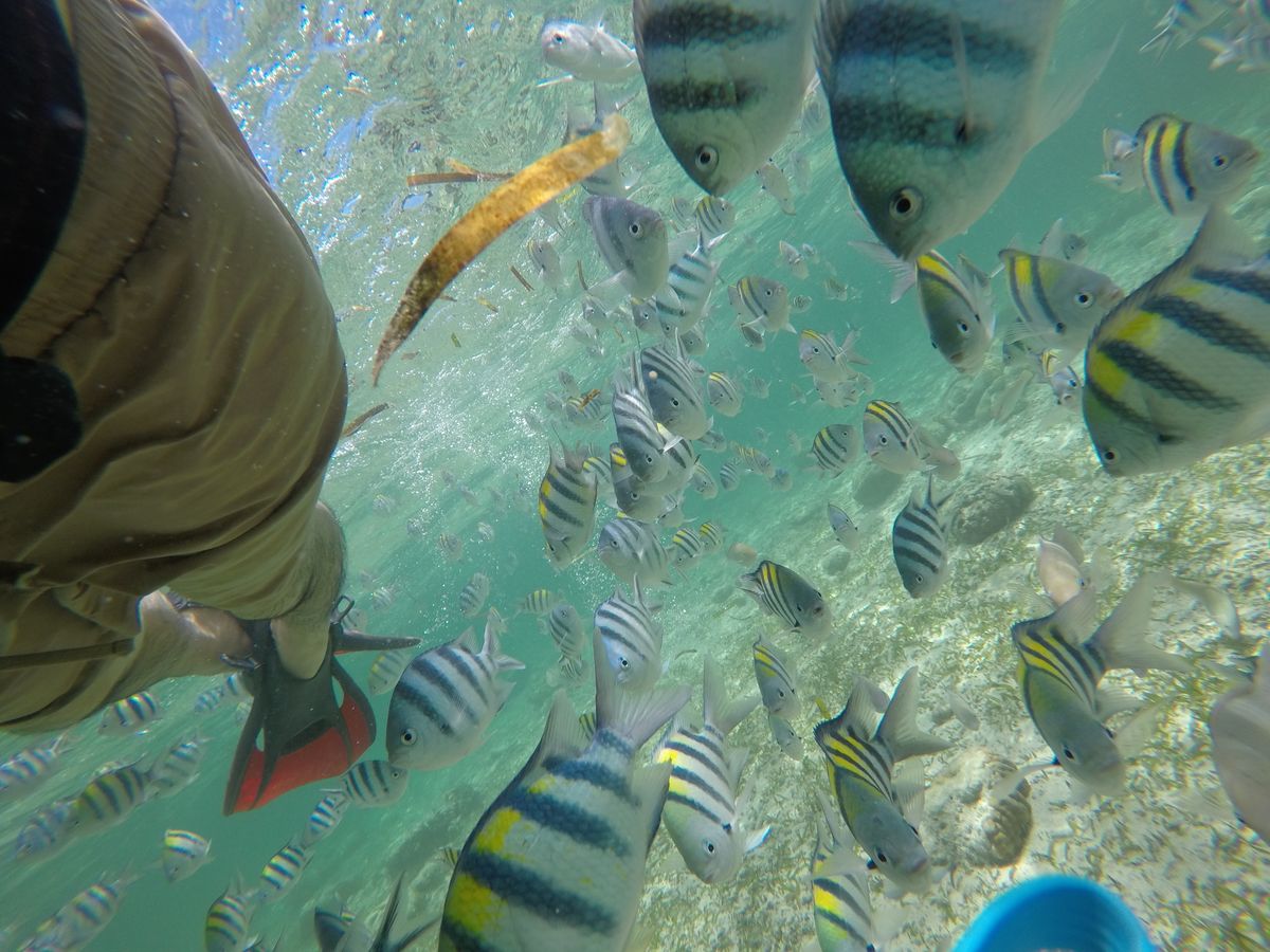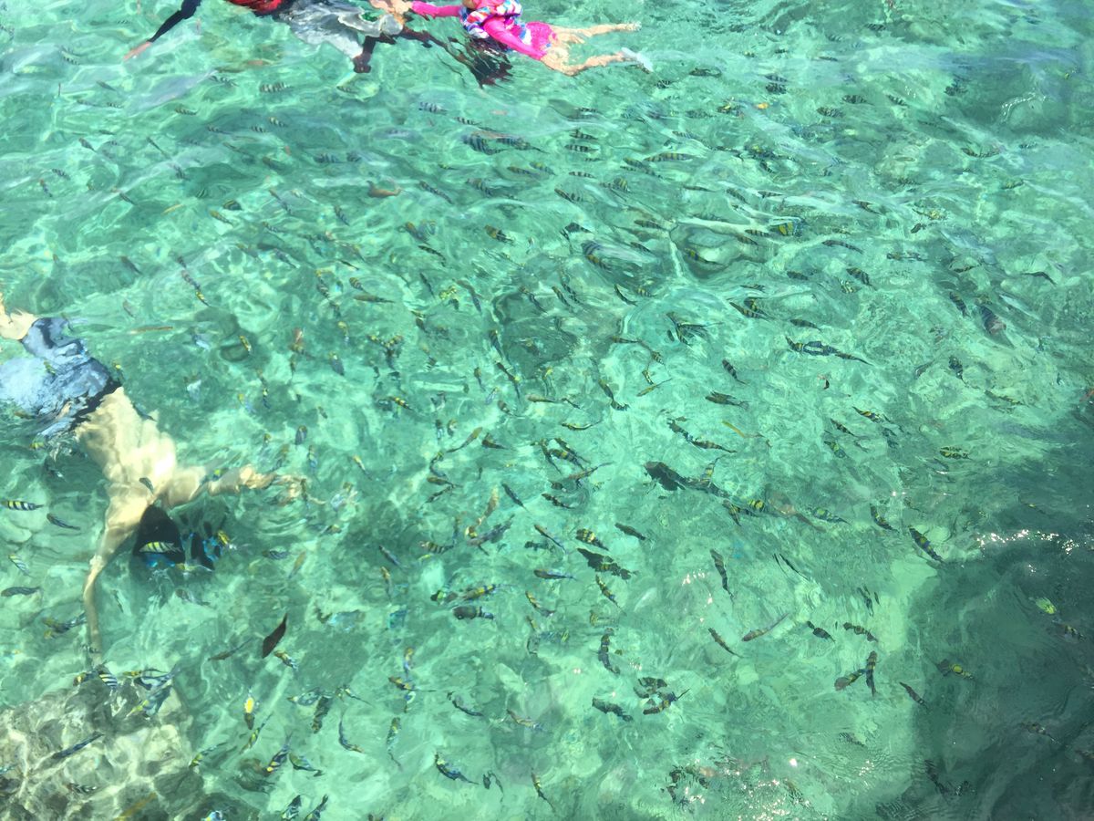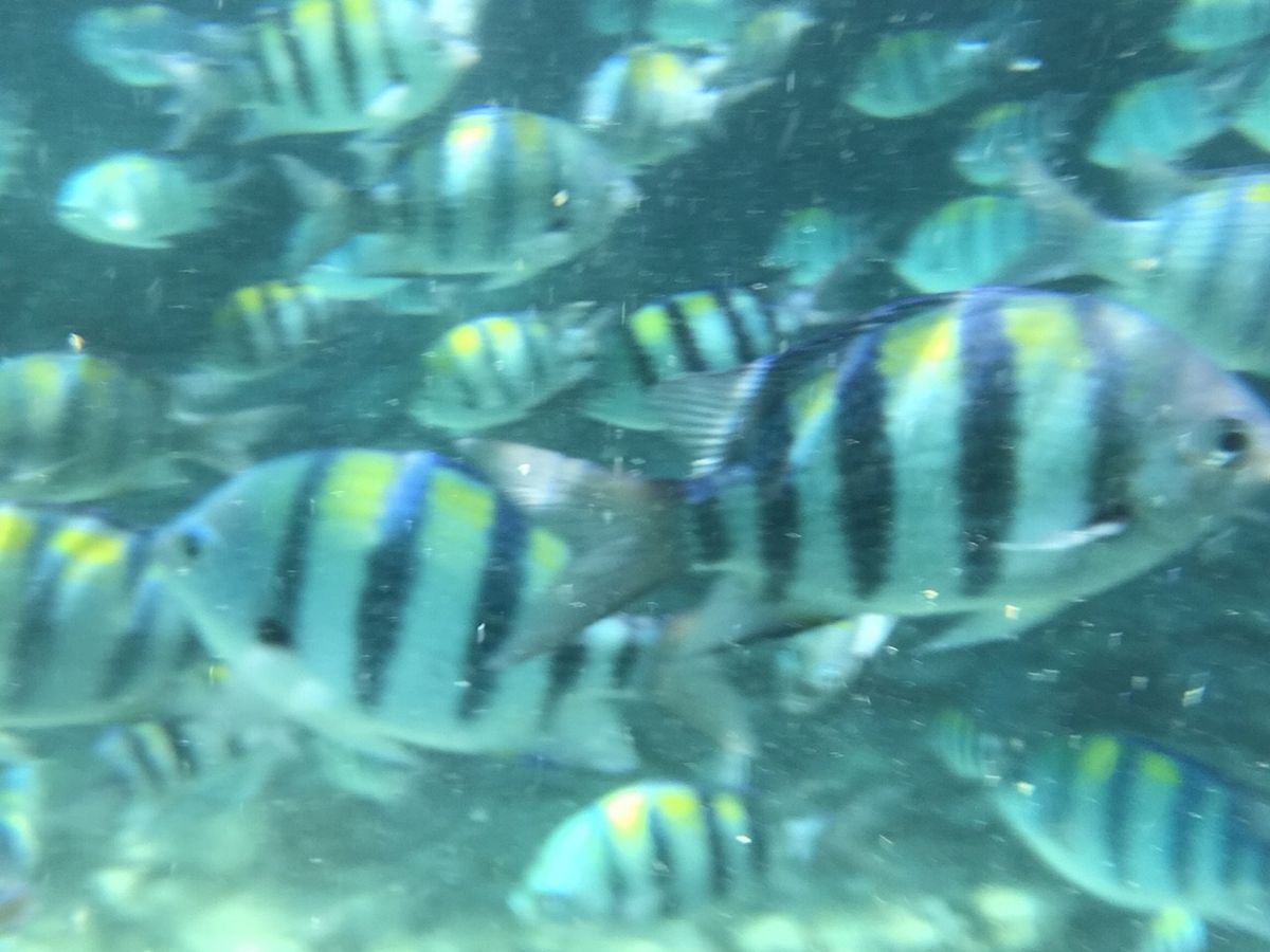 ひとつめの島では船の周りでスノーケリングをしました!魚、魚、魚!餌をあげたり写真を撮ったり1時間海の中で遊びました!現地のスタッフが最初から最後まで海の中を案内してくれました!!