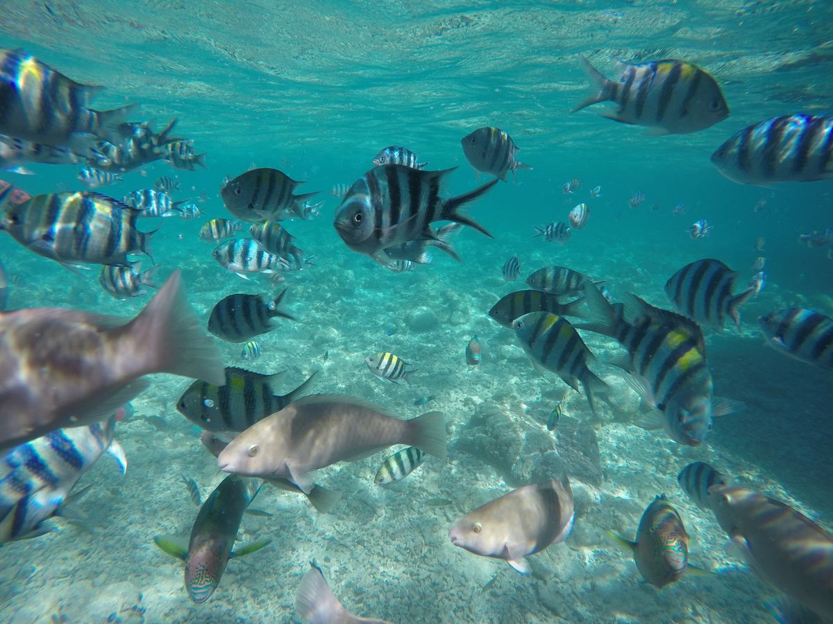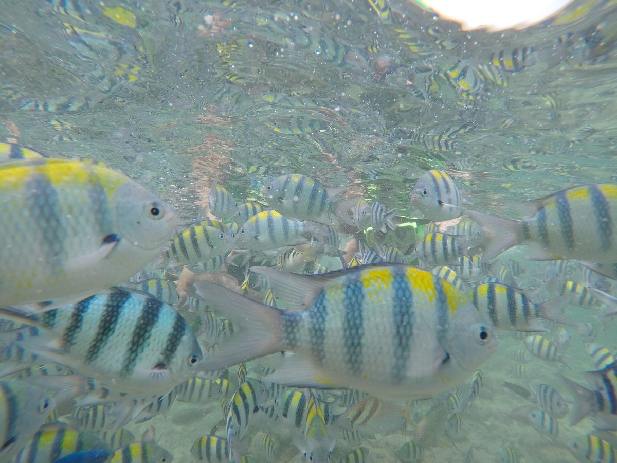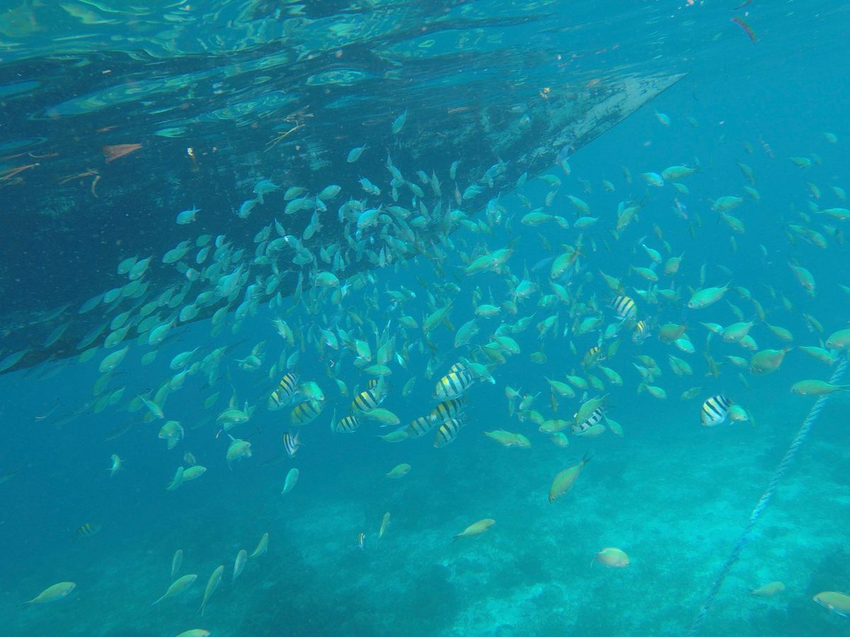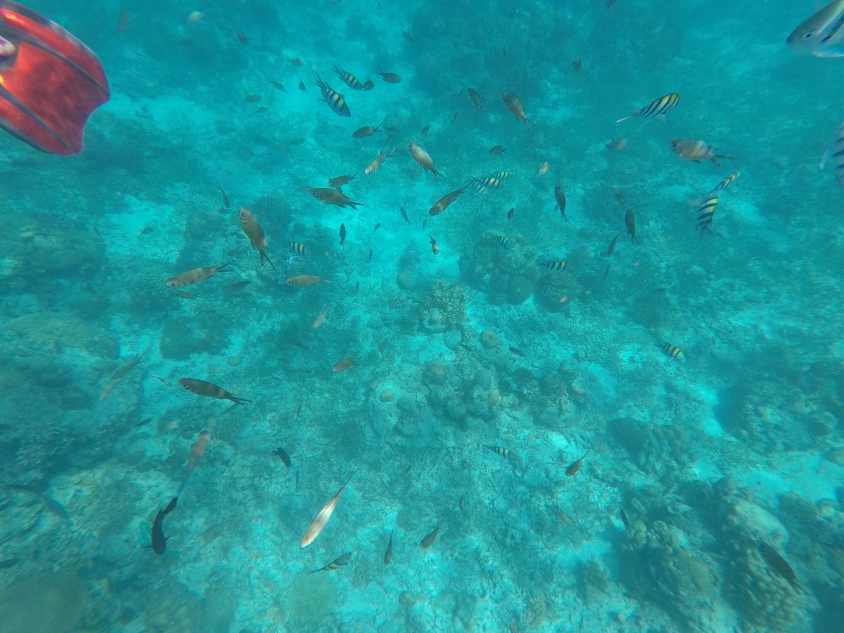 ひとつめの島では船の周りでスノーケリングをしました!魚、魚、魚!餌をあげたり写真を撮ったり1時間海の中で遊びました!現地のスタッフが最初から最後まで海の中を案内してくれました!!