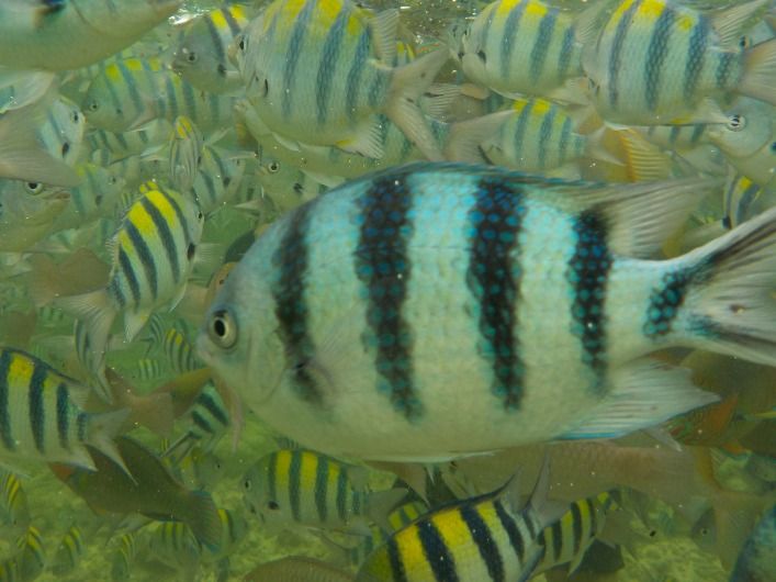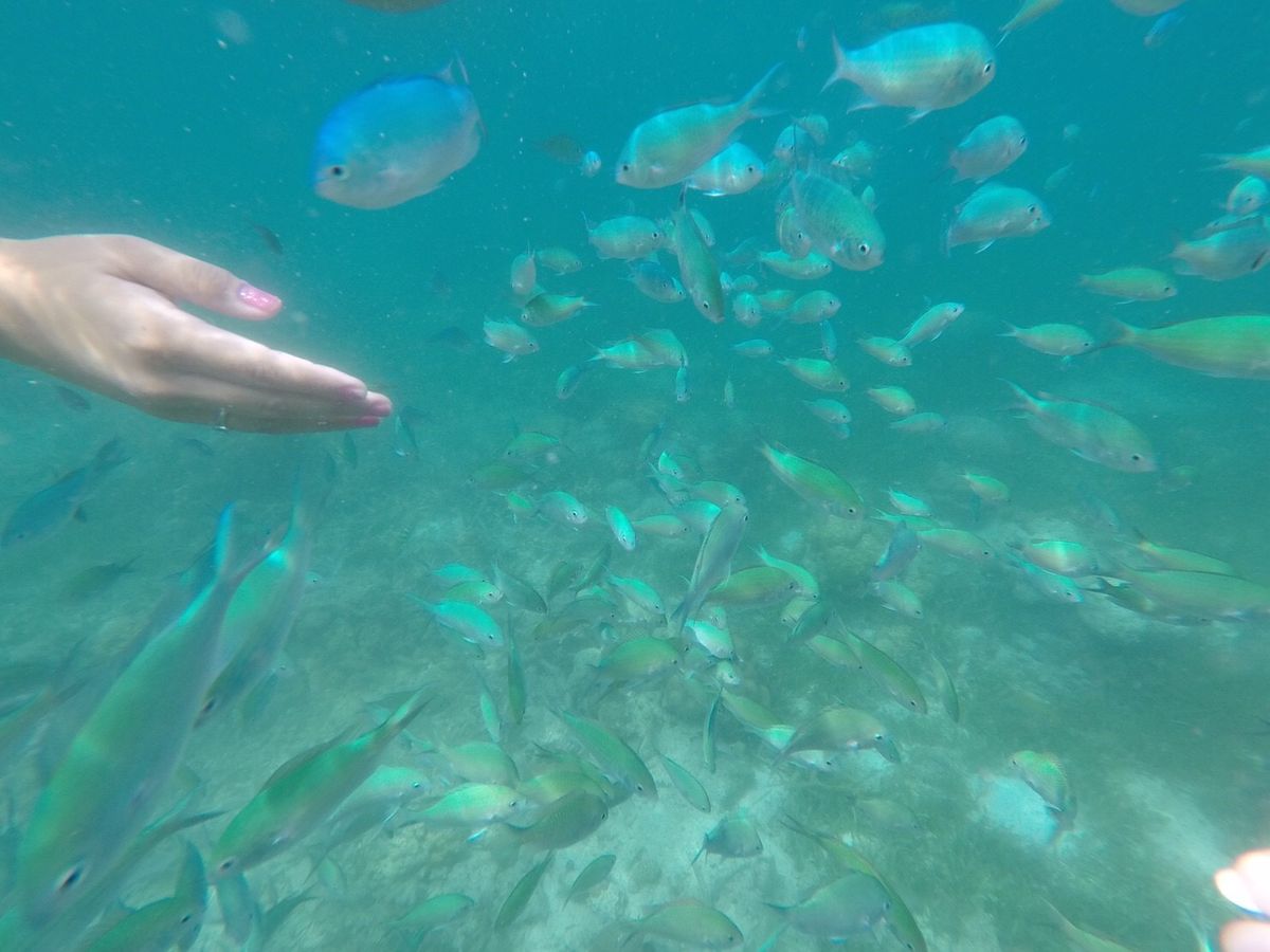 餌のパンをふたつもらい、いざ海の中へ入るとすごく綺麗で透き通っていました!感動でした★★★