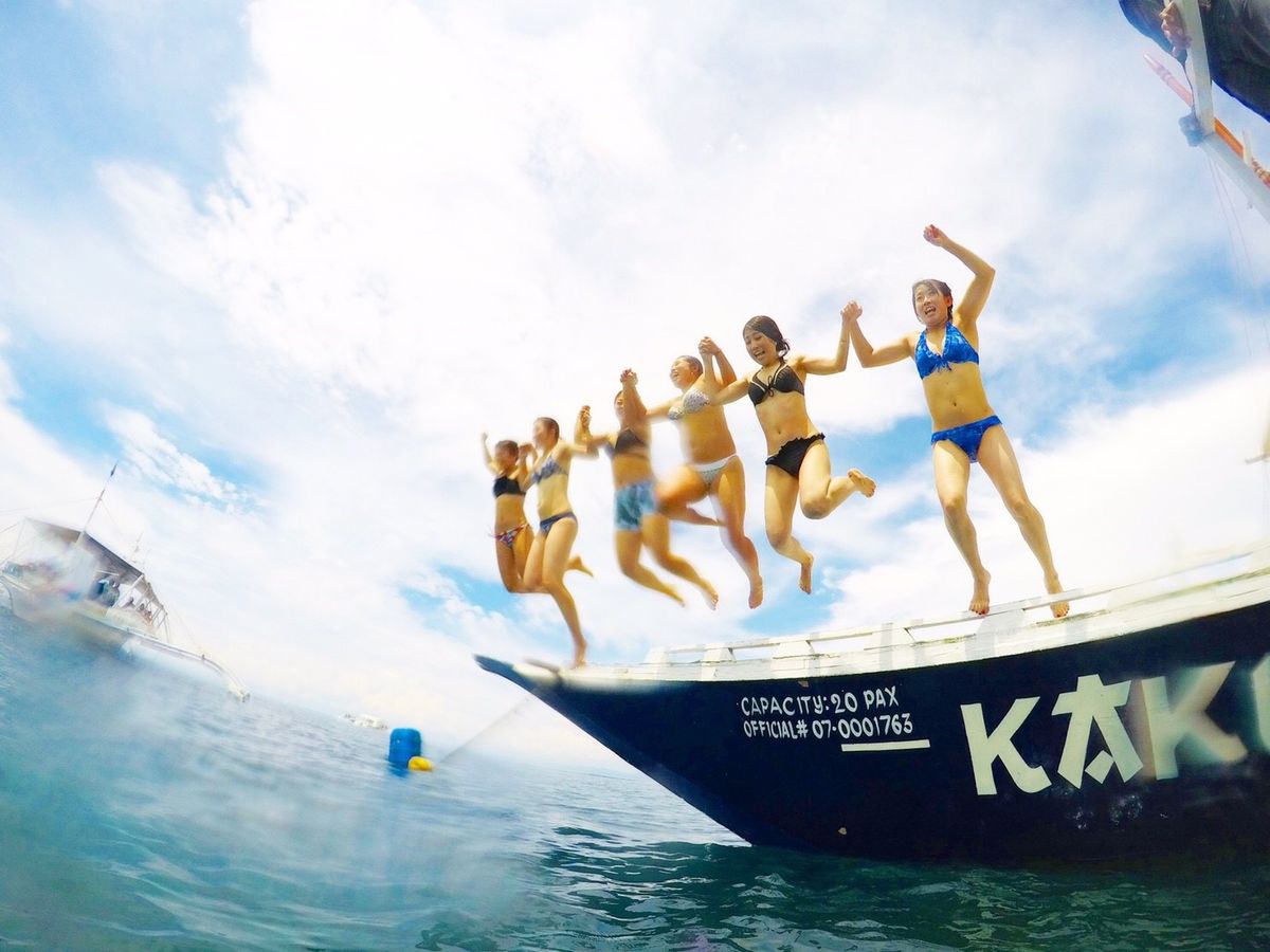 最後の方は、舟から海に飛び込んだり、ライフジャケット脱いで潜ったり、
