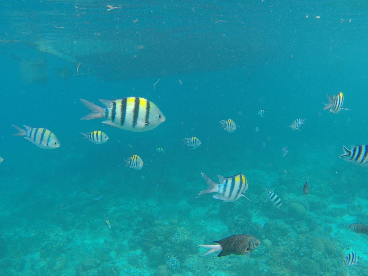 1時間弱で、ヒルトゥガン島付近に到着。早速、装備して泳ぎました。