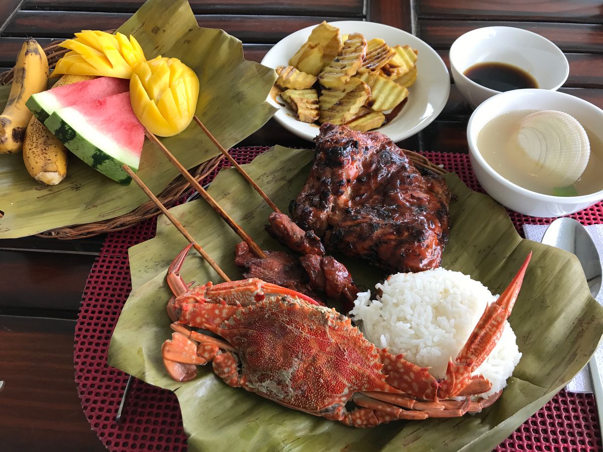 このあとナルスアン島に上陸、暖かいスープに肉、魚、カニとフルコースのご飯を頂きました。