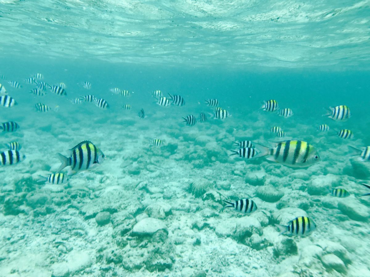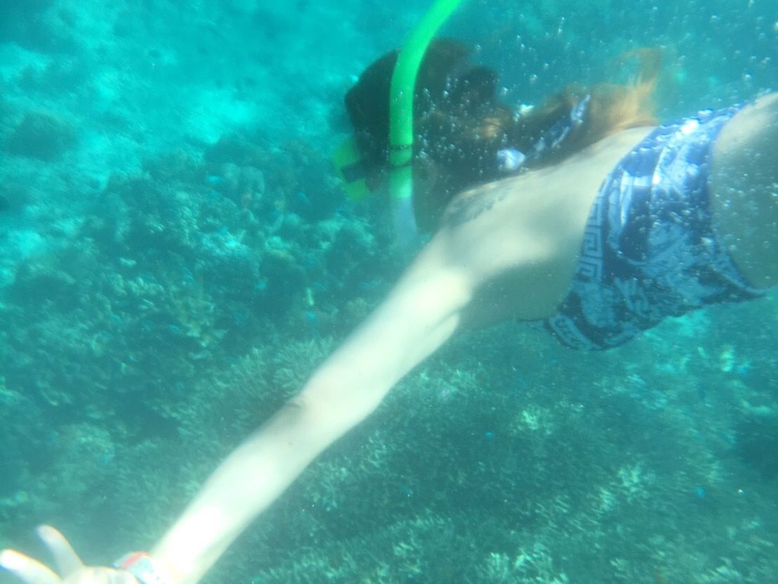 想像していた以上に海が綺麗で感動しました。沖縄の海にも行きましたが、比べ物にならないくらいの透明感です。特にシュノーケルの時は熱帯魚がとてもたくさんいて、楽しかったです。
