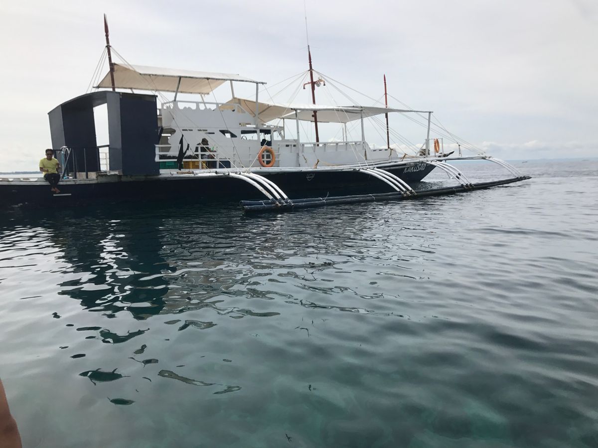 当日は、セブシティ内のホテルに宿泊していましたので、40~50分くらいかかりましたが、日本語堪能なガイドさんで安心しました!船場について、紹介された日本人スタッフのお兄さんがとてもステキな方で♡ルンルン気分で小型ボートに乗り込みました。途中で大型船に乗り換えるのですが、現地のスタッフさん方が親切にしてくださり、怖くありませんでした!ここからです!波が多少高い日で船酔いの方が数名いらしゃってかなりつらそうでした。少しでも心配な方は酔い止め等を服用された方がよいと思います。でも最後まで現地スタッフの方が、鼻から吸引タイプの吐き止めをそばで処方しておられたので、気分が悪かった方も安心だったと思います♪