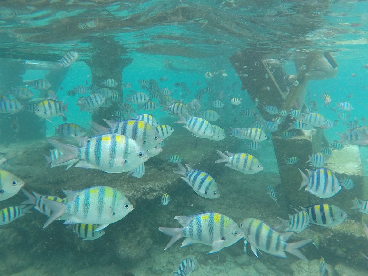 ナルスアン島から20分ほどかけて、ヒルトゥガン島に到着。この日は天気にも恵まれ、長い桟橋と海の青さでリゾート気分はマックスに。島に到着後、ランチまでの間はそれぞれ島を散策したり、写真を撮ったり思い思いに過ごしました。ランチも美味しかったです。ランチ後、シュノーケリングを再開しましたが、こちらの島が最高でした。いろいろな魚、水中にあるハンモックなど、すごく楽しかったです。