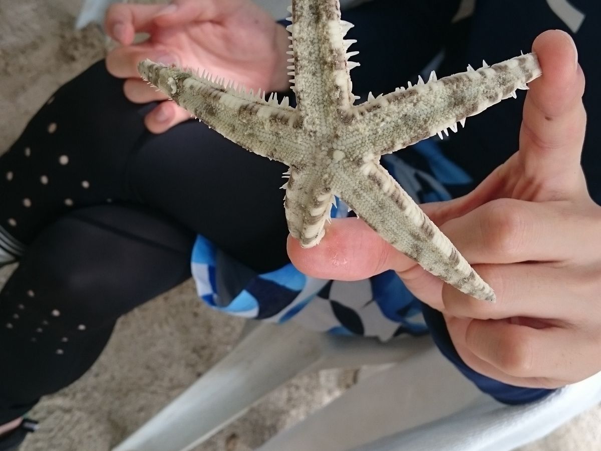 海にいる人手は柔らかいですが、つかんむと段々と固くなります。警戒しているのですかね・・・