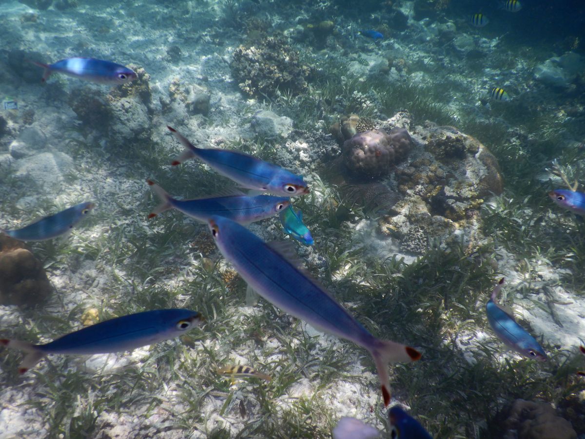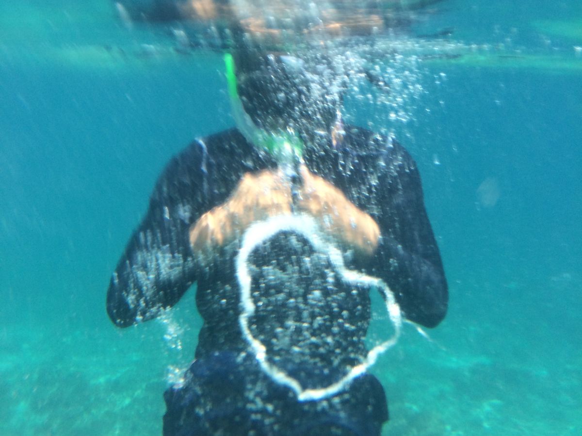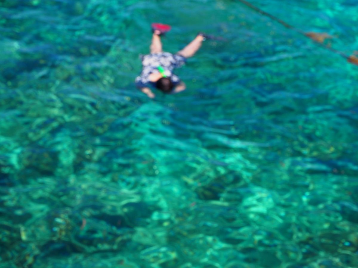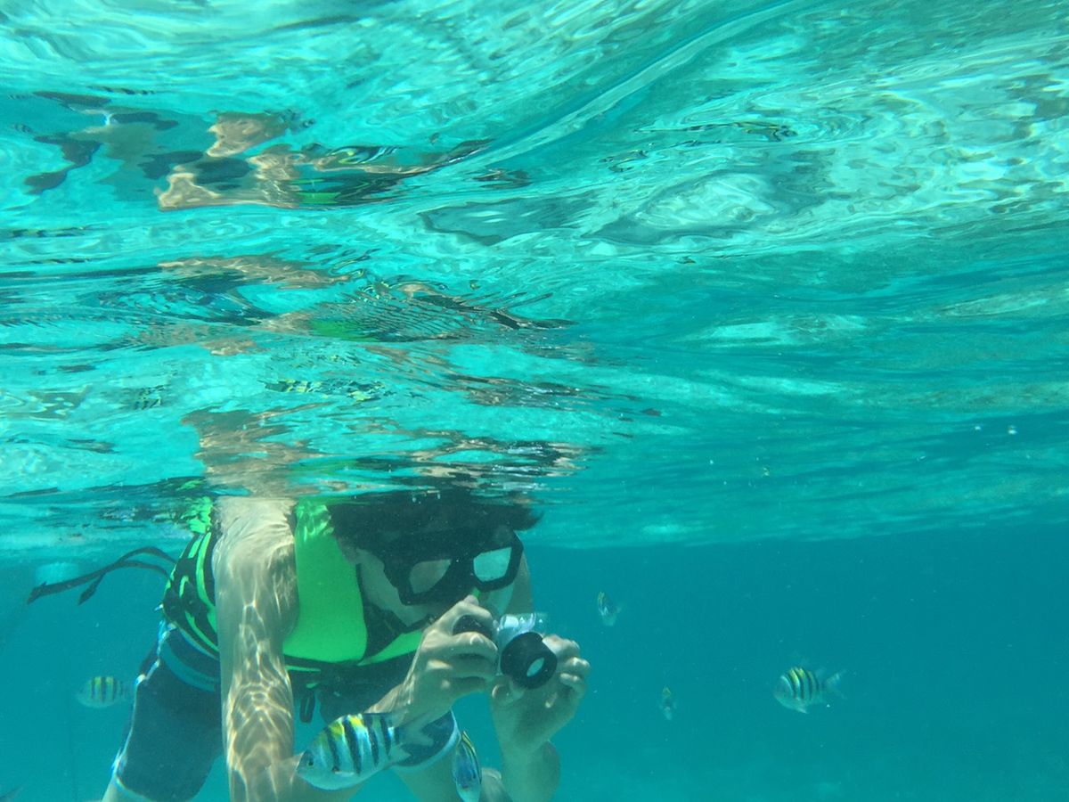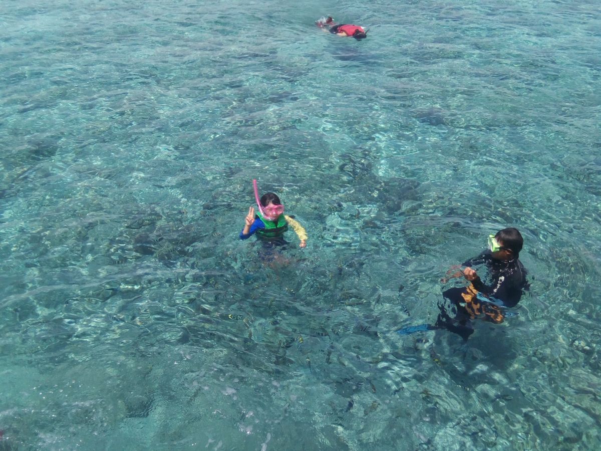 初めは島の近くの浅瀬の海の真ん中で、シュノーケリングをしました。