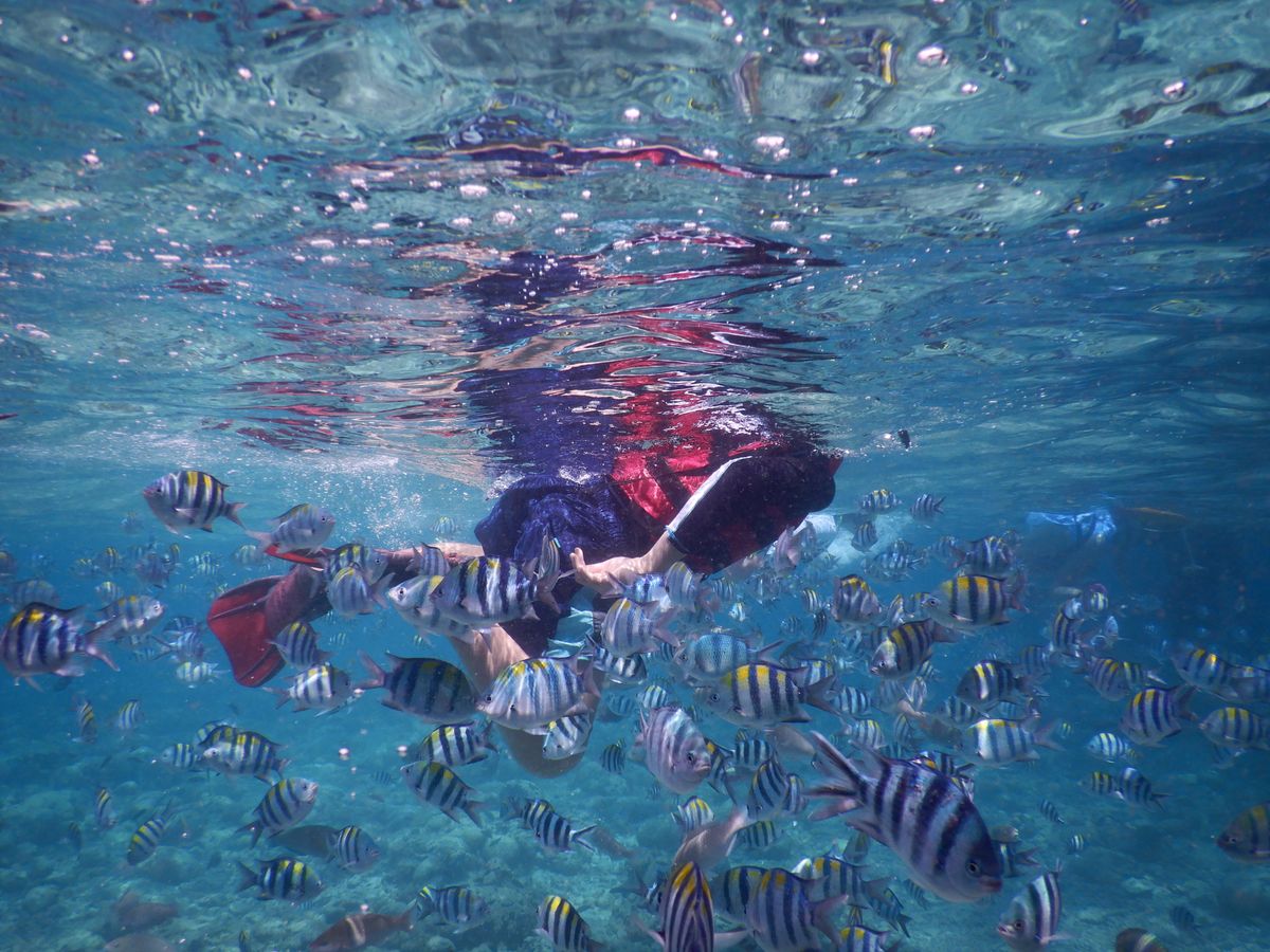 島に着いてからも綺麗な海で魚に餌をあげたり
