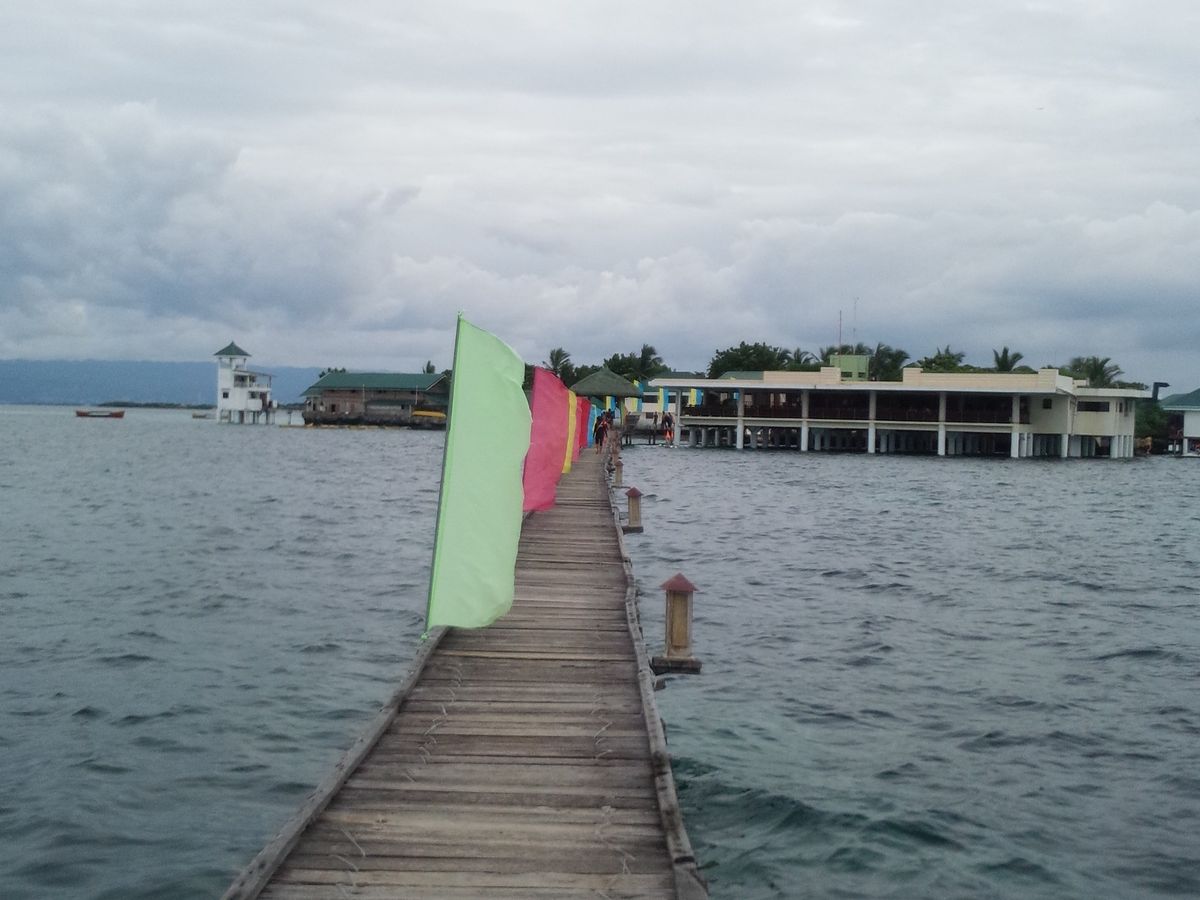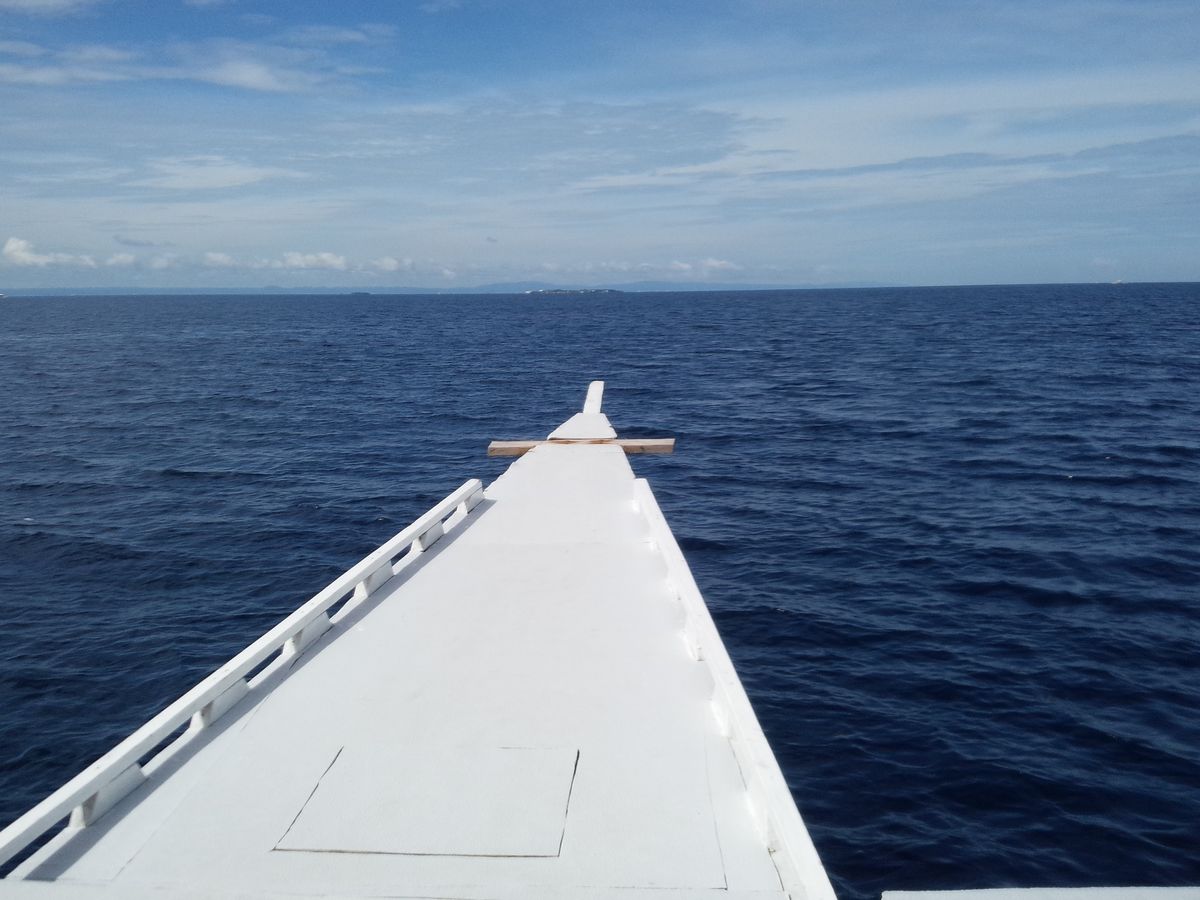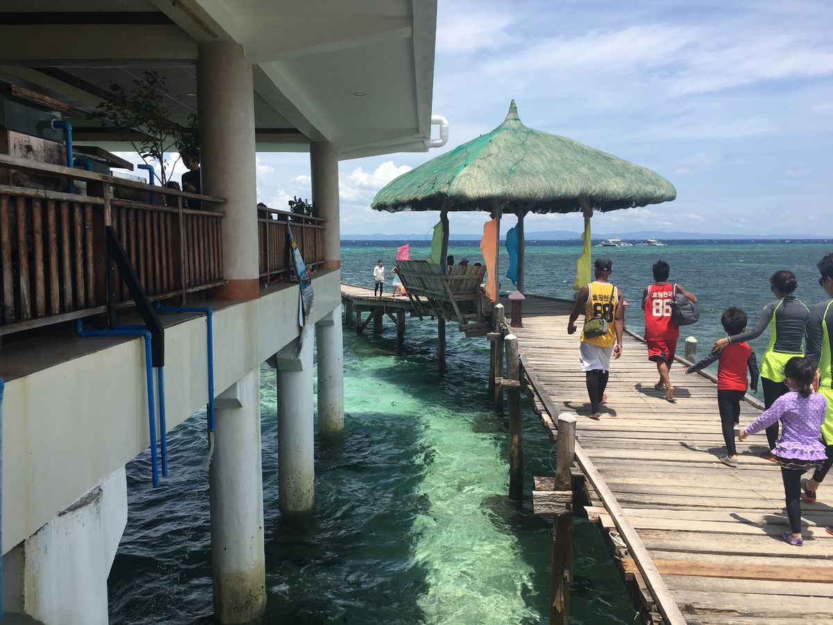 Jパークホテルの隣の桟橋からアウトリガーボートでヒルトゥガン島に向かいます。
