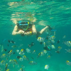シュノーケリングはわりと波があって、流されながら必死に泳ぎましたが、貸してくれるフィンとジャケットを着ると楽しく魚を見ることができました。海の中でも、現地のスタッフが遊んでくれて、楽しかったです!