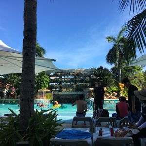 デイユースでJパークのプールに遊びに行きました。スライダーが面白く、またビーチにもすぐいけて最高でした。ですが、プールの種類自体は少なく1日遊ぶには物足りなかったです。ビーチチェアで寝ているとエステのお誘いをお姉さんしに来てくれて、お金を余計に持っていけば良かったと後悔しました。カードかお金を多めに持っていくことをオススメします。お昼のビュッフェはシャングリラのビュッフェより美味しかったです!