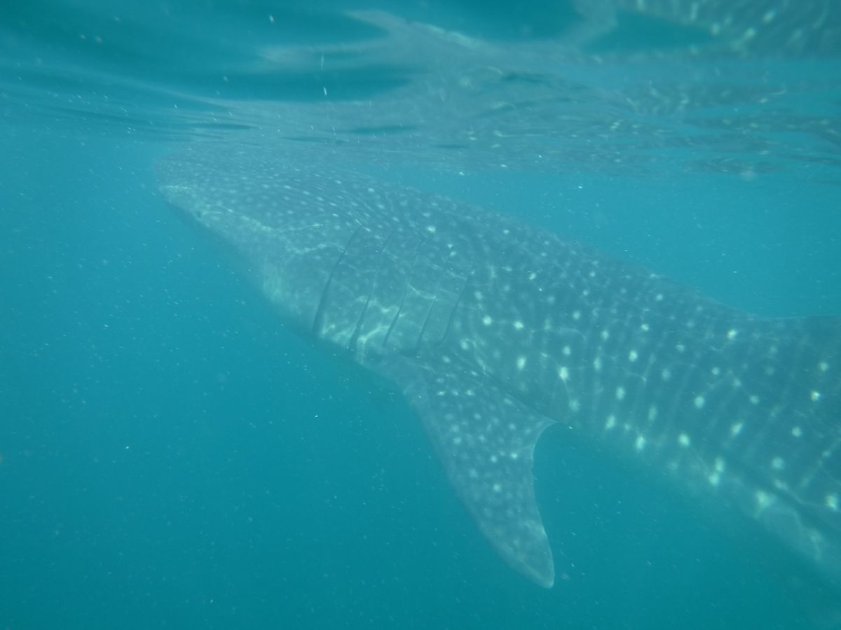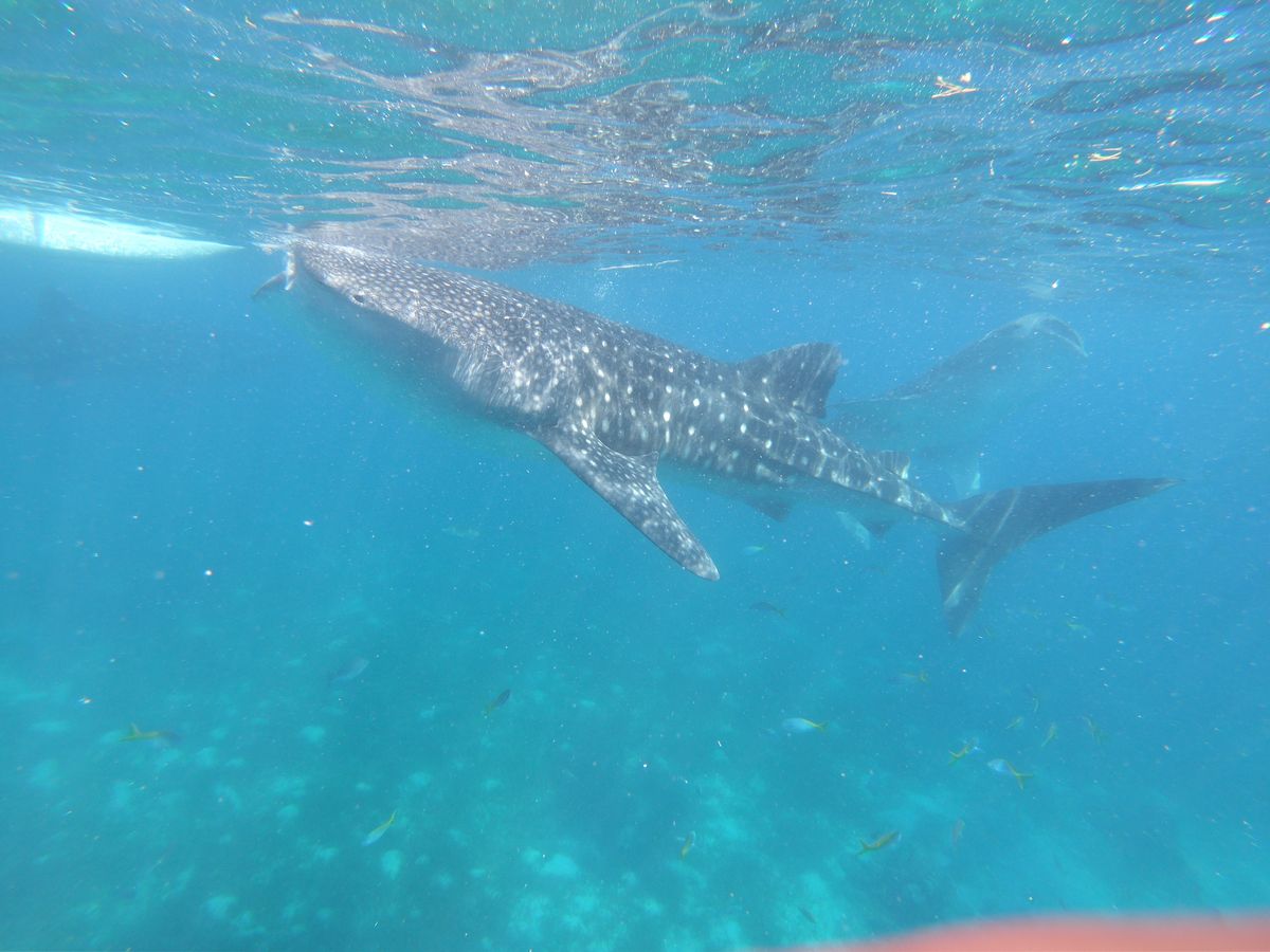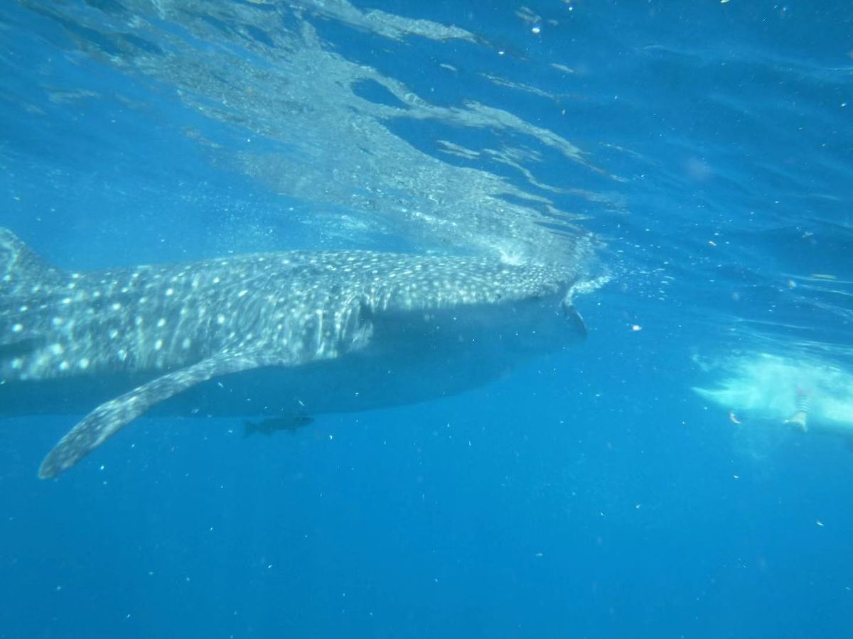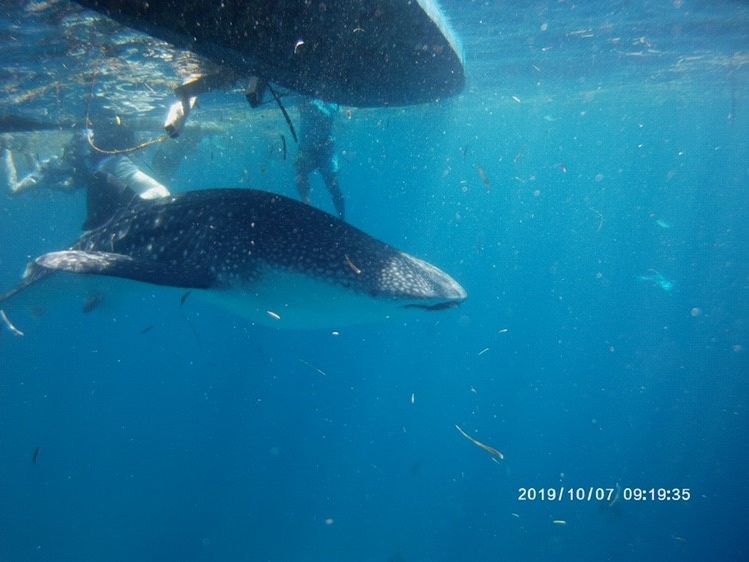 ジンベイザメは、現地でGoProをレンタル(有料)しました。待ち時間やら手続きやらで1時間弱してから、小舟に乗り沖合いのジンベイザメのいるスポットへ行きます。ここの水中ガイド達が、しきりに海中に潜らせて写真を撮ってくれるのですが、ジンベイザメをゆっくり見たいタイミングもあり、少しうざいです。