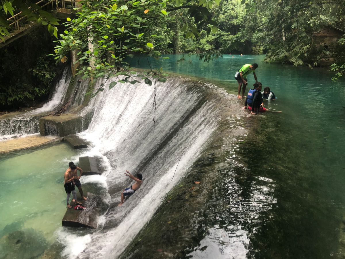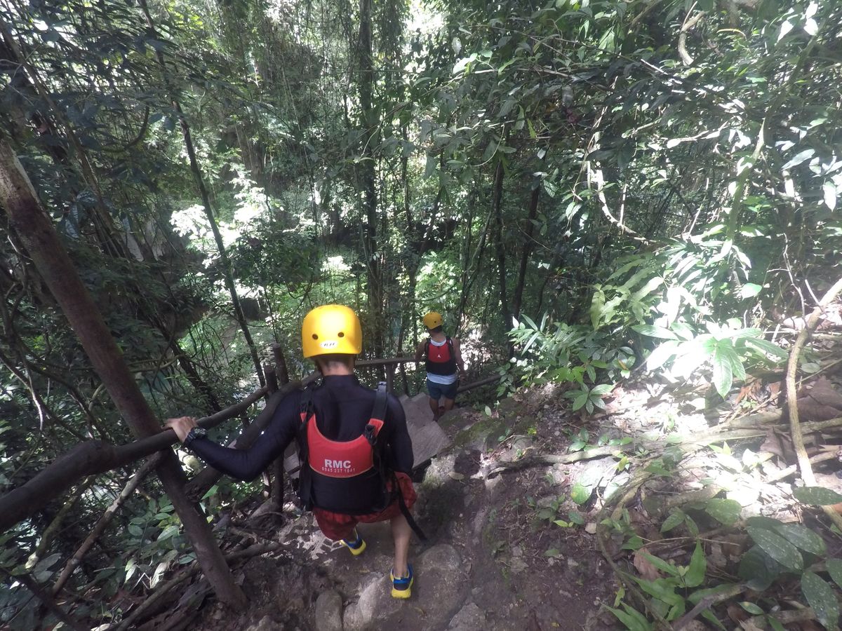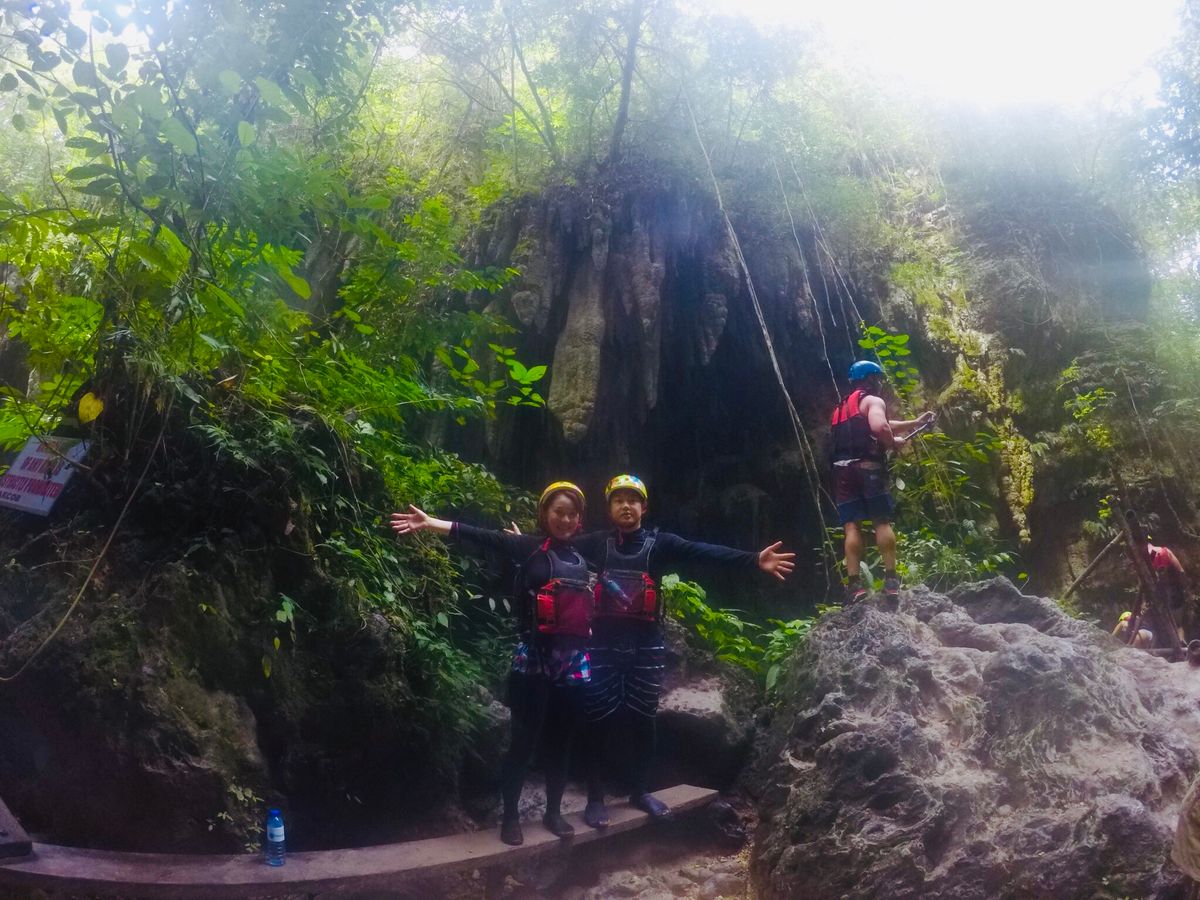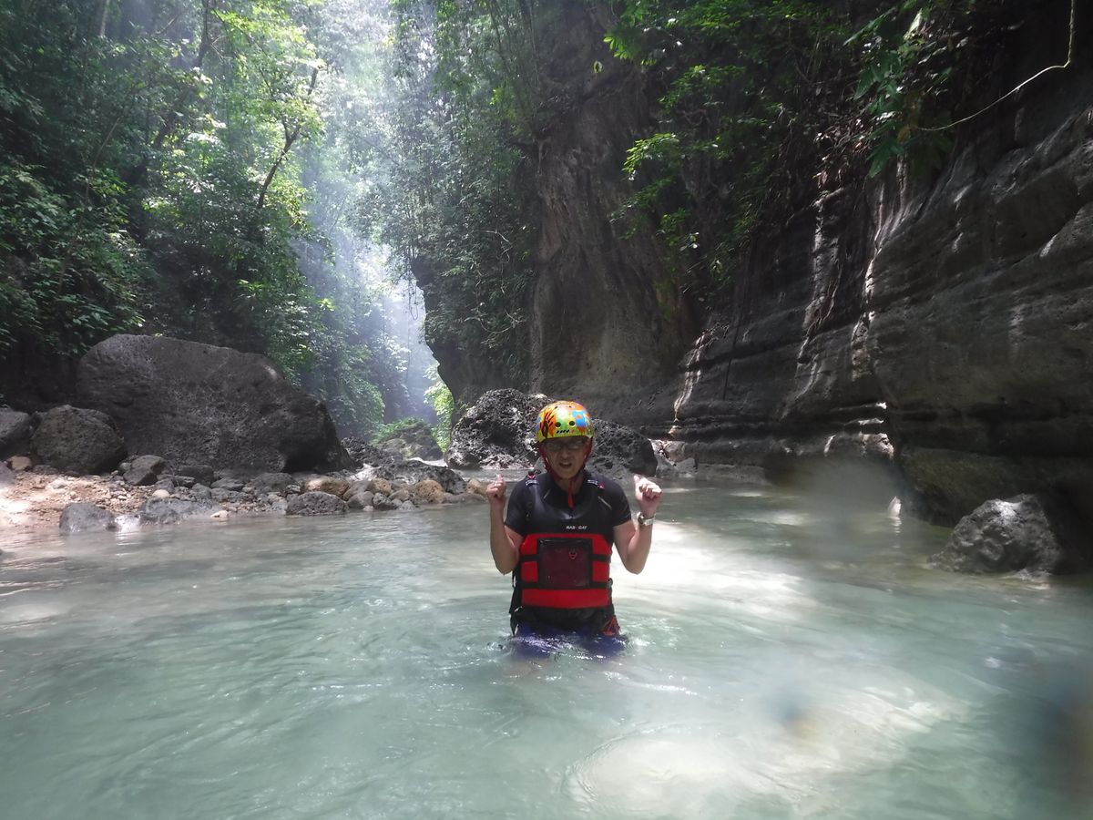 そのあとまた車に乗りこと約1時間。キャニオリングのショップに到着。またライフジャケットとヘルメットを受け取り、キャニオリングガイドとともに出発地点へ。出発地点の事務所で同意書記名と注意事項(英語)で聞き、少しの登山して、キャニオリングのスタート。親切な現地ガイドさんの誘導で滝を下ったり、飛び込んだり、最後にとても綺麗なカワサン滝を見ることができたし、すこし泳ぎもできました。本当に日本では、できない貴重な体験ができました。