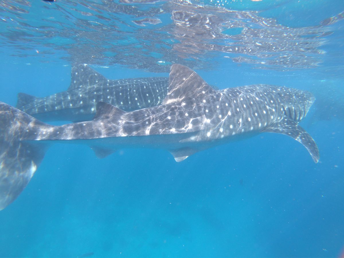 ジンベイザメのポイントに到着すると、合計で3匹程のジンベイザメを何度も見ることができました。大きいものですと、6~7メートルはあるかと思います。