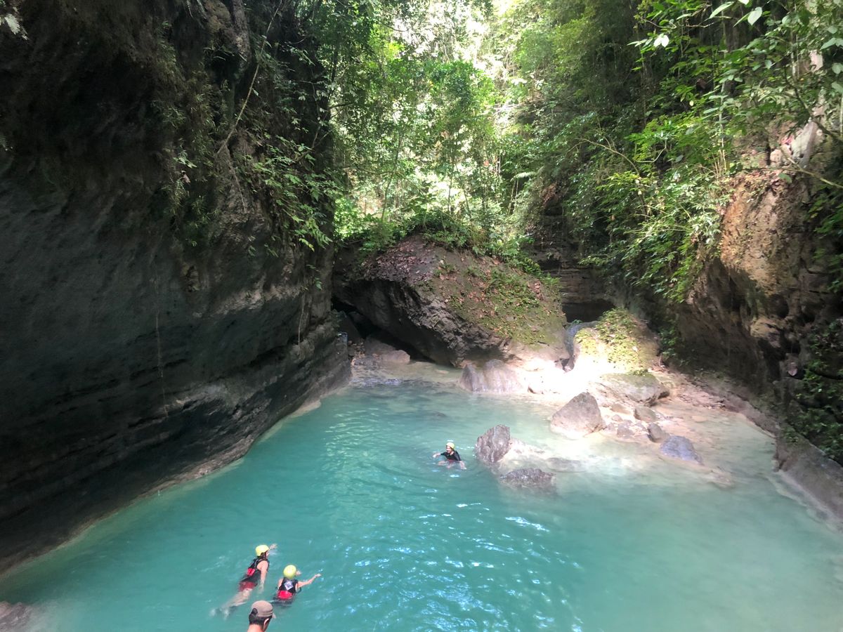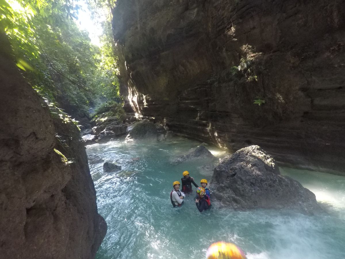 キャニオリングは約3時間くらいかけて現地のガイドさんと川をくだっていきます。スライダーを滑り落ちたり、泳いだり、滝つぼにダイブしたり、普段絶対に味わうことのない体験ができます。現地のガイドさんがとても親切で、危ない場所では手を取って誘導してくれたりしっかりとフォローしてくれました。ジンベイザメのときにレンタルしたGoProで写真や動画もたくさん撮ってくれます。