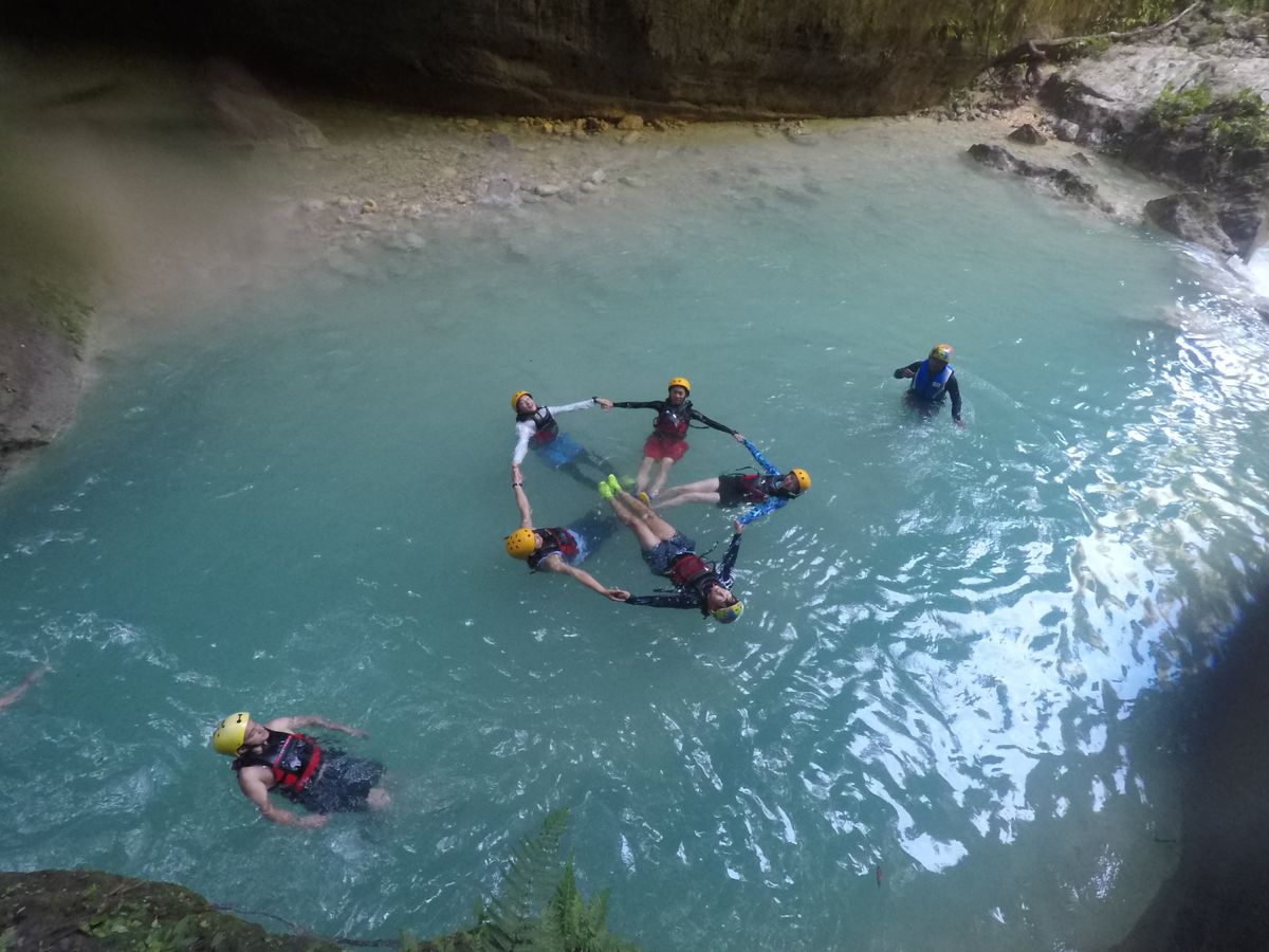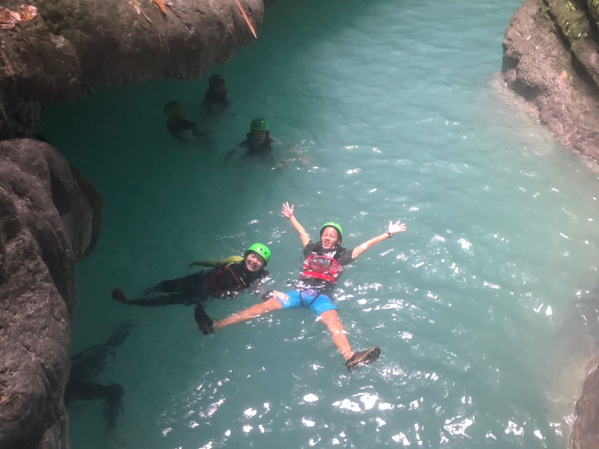 カワサンでのキャニオリングの際に泳ぐエメラルドグリーンの色をした川は本当に綺麗ですよね。