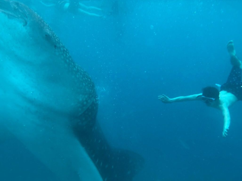 オスロブ到着でショップにイン。注意事項とライフジャケット装着して、いよいよジンベイザメウォッチングに他のツアーグループと一緒にボートに乗り出発。ジンベイザメとの距離は、ビックリする程とても近くて貴重な体験ができました!(自分で写真を撮るのもありでですが、現地のガイドさんに撮ってもらったほうが良い写真が撮れそうですよ。)