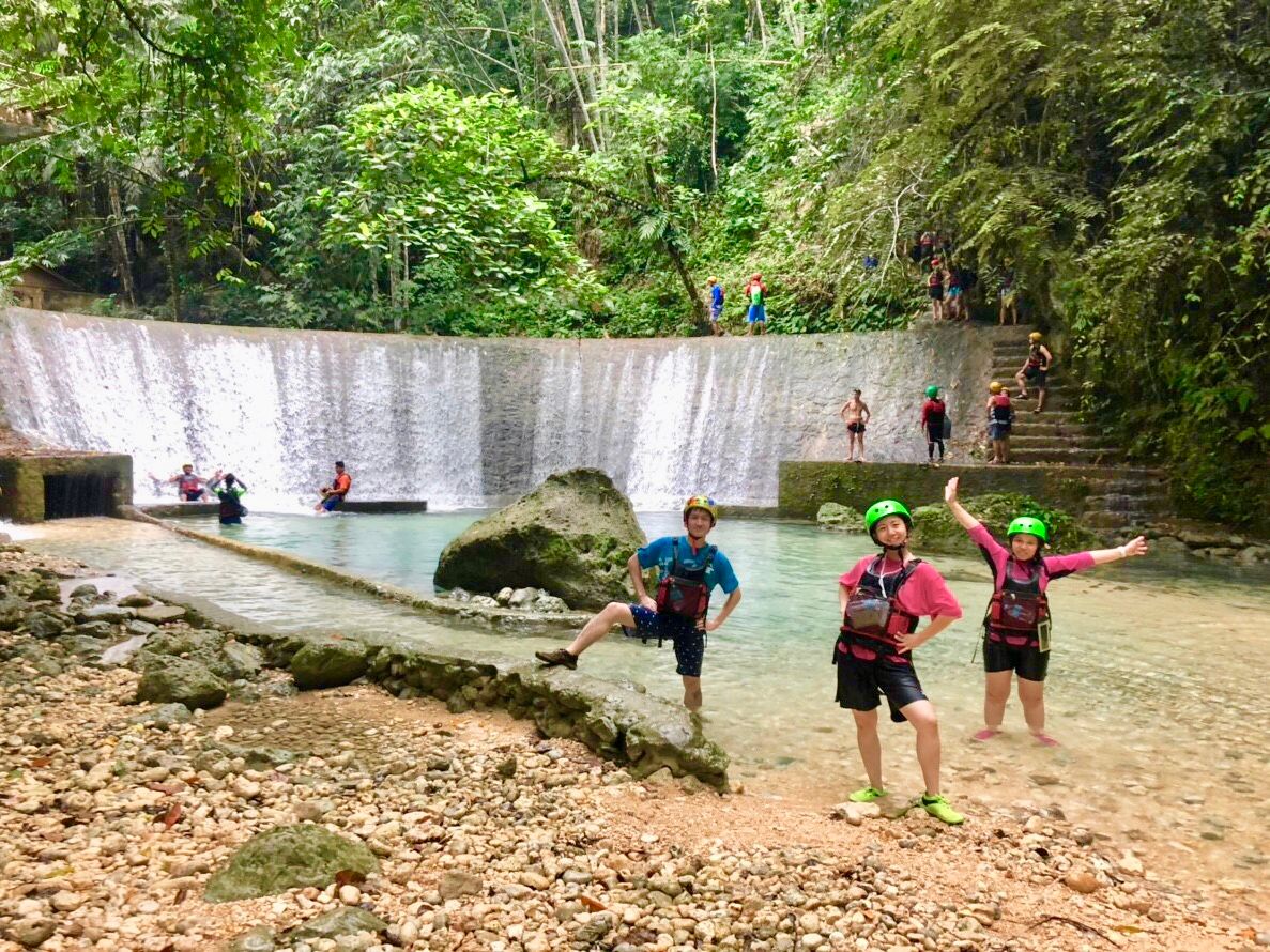 ジンベエザメのあとに向かうキャニオリングは水質がとても綺麗なことで有名なカワサン滝の上流からスタートします。
