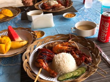 その後、水着のまま、キャニオニングのカワサン滝付近まで車で移動し、11時頃に昼食を取りました。昼食は海辺でのBBQで美味しかったです。