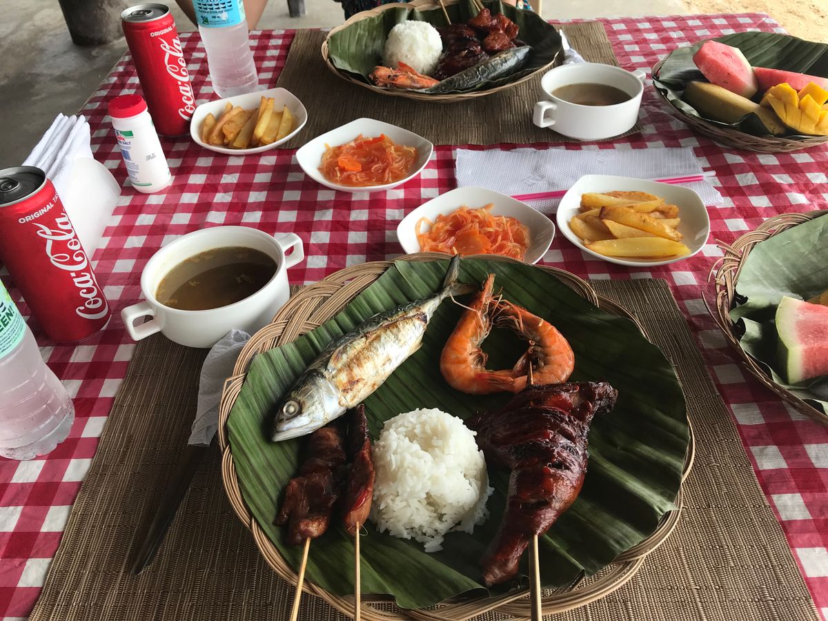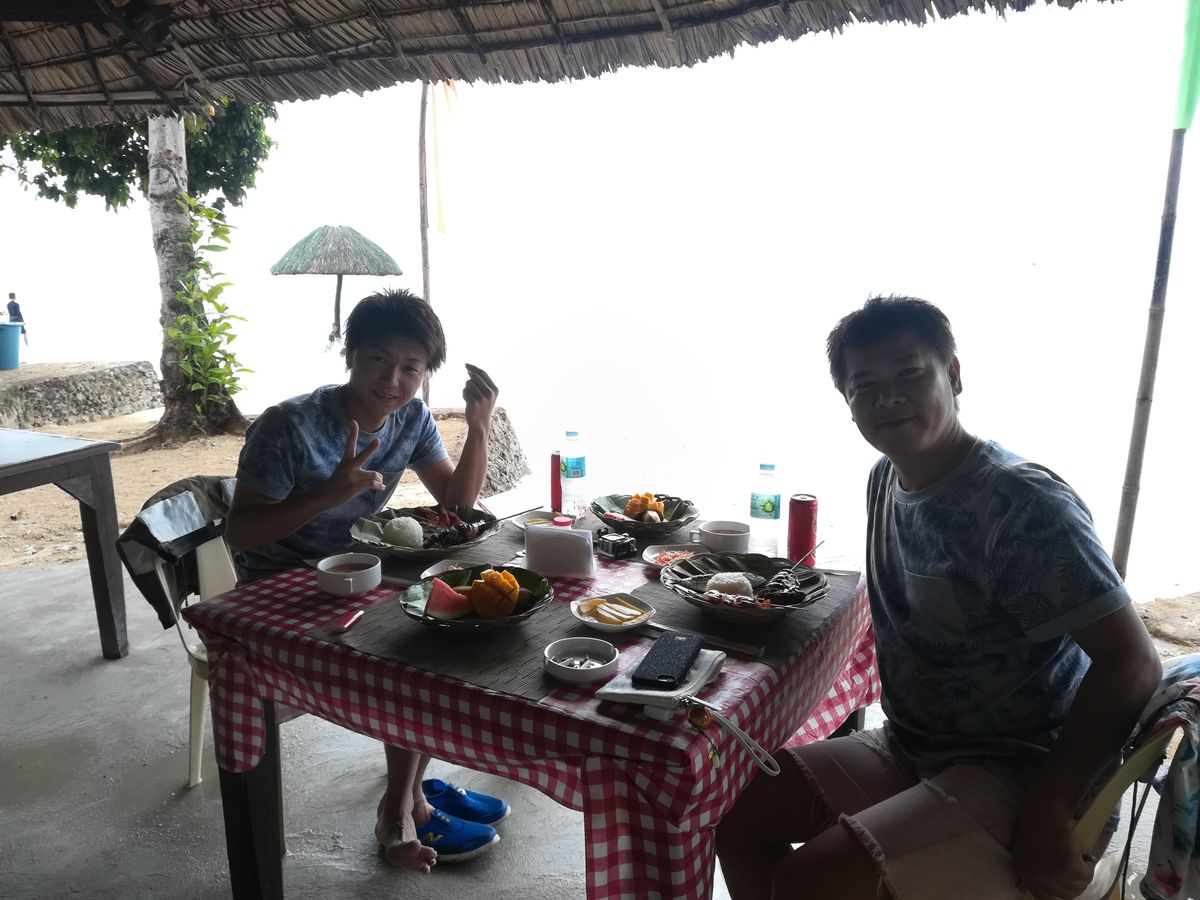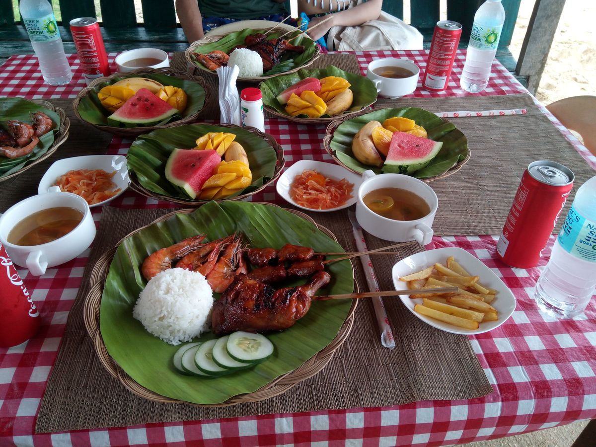 昼食は選択権は無いが、肉系のバーベキューとフルーツ、スープとコーラ1本と水1本で十分満足。海に入っても良いとのことだが入らず、代わりに食後30分ベンチで爆睡した。