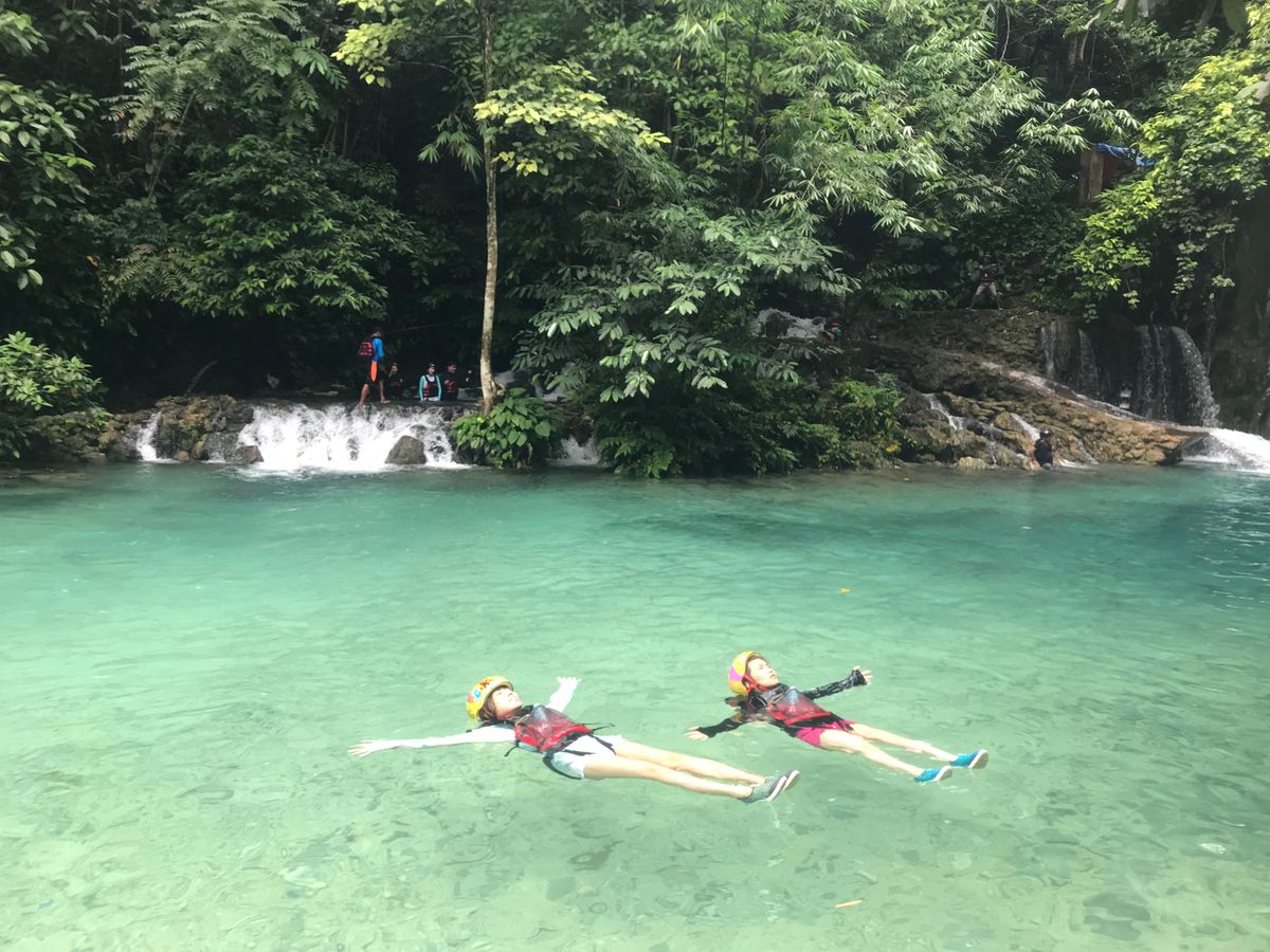 途中ジャンプスポットがいくつかありますが飛べない方には迂回ルートもあるので安心です。3時間川を下りますが、川の水がとっても温かいのとガイドさんが楽しませてくれるので時間はあっという間です。川の下流でカワサン滝に出ますがカワサン滝には多くの観光客がいます。上流から下ってきた私たちにはカワサン滝以上の美しい光景を見てきているので、カワサン滝で休憩する時間を取りますかと聞かれましたがスルーしちゃいました(笑)