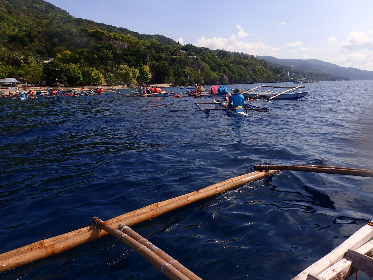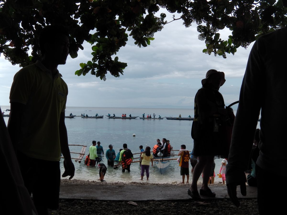 既に大勢の観光客で賑わっている。水着に着替えて同意書にサインして早速ゴー。荷物は有料ロッカーもあるみたいだが、タダなので車の中に置いた。カメラは自前の水中カメラ持参するも、持ち込み料金で250ペソ(500円強)取られた。本サイトで事前申請項目にあった足ヒレは魚を傷つけるという理由で無かった。