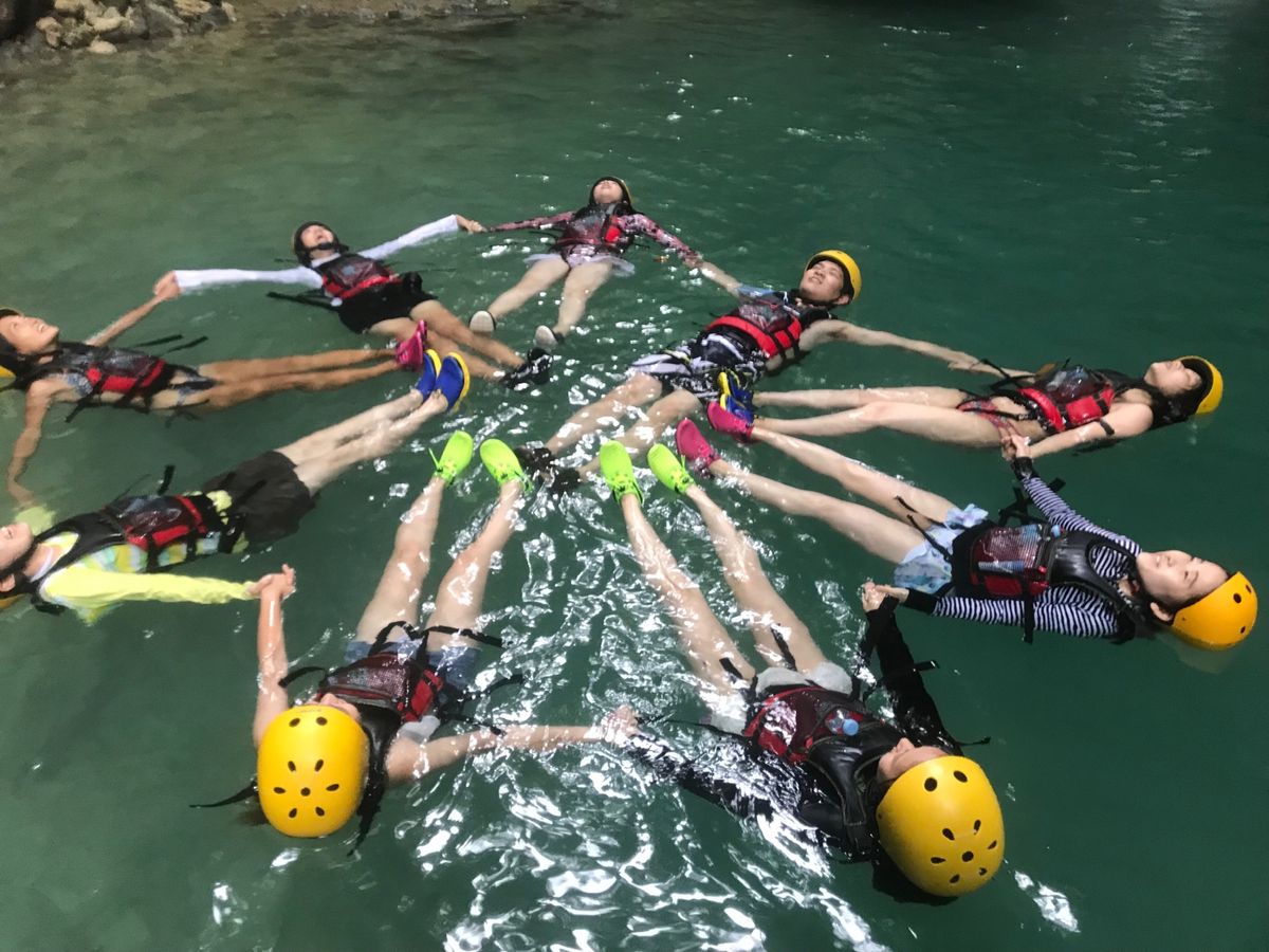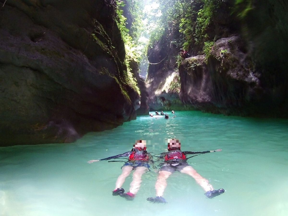カワサンでのキャニオリングの際に泳ぐエメラルドグリーンの色をした川は本当に綺麗ですよね。