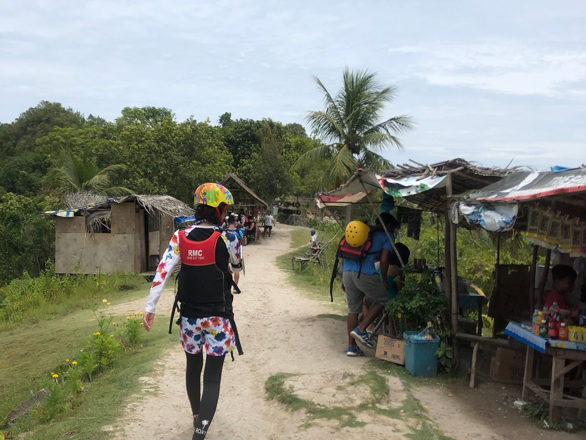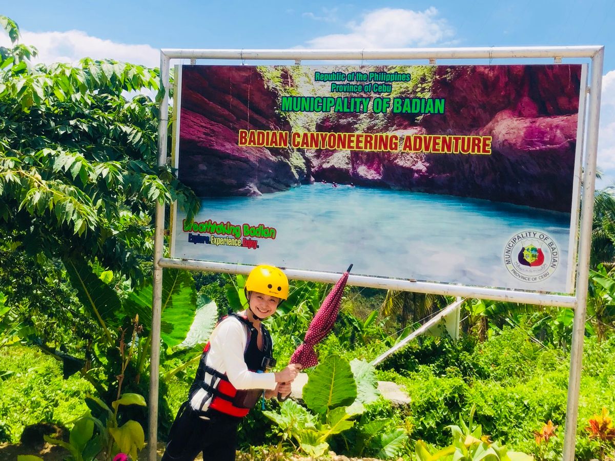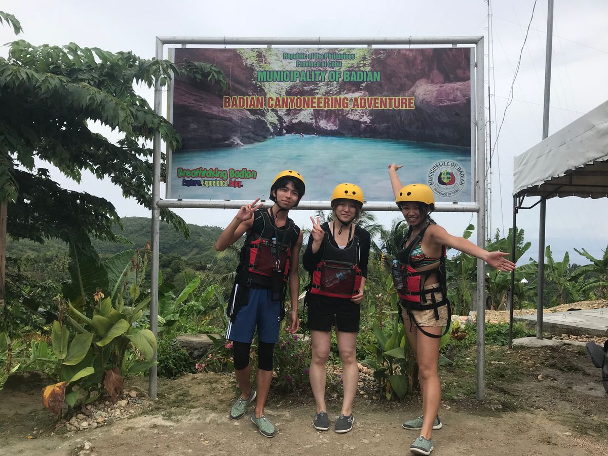 船に乗って直ぐジンベイザメスポットに到着です!海面からもジンベイザメが見えますが、海に入って見ると大迫力の光景が。すぐ近くまでジンベイザメがゆっくり泳いできます。近づくつもりはなくてもジンベイザメが勝手に寄ってくるほどです。30分充分時間をくれてジンベイザメを見ることができますし、海も綺麗で珊瑚や熱帯魚も沢山いるので防水カメラを持っていくことをお勧めします(もっていない方はGoProレンタルしましょう)。因みにガイドさんは海には入らず船から見ているので、写真は自分で撮らなければなりません。海底に落とさないように注意してくださいね。30分も海にいればかなり寒くなります。船から上がったらシャワーを浴びてタオルで体を拭いたらキャニオニングスポットへ直ぐ出発です。水着のまま移動するので羽織れる長袖の服があった方がいいですよ。寒さは体力を奪うので。キャニオニングスポットまで1時間ほど移動します。移動はセブ島の海岸線をひたすら進むのですがフィリピンののんびりとした田舎の光景に和みます。キャニオニングスポットのちょっと手前でキャニオニングシューズとライフジャケットとヘルメットを貸してくれる場所に寄りますが、ここのトイレはテッシュがないので女性はテッシュ持参しましょう。
